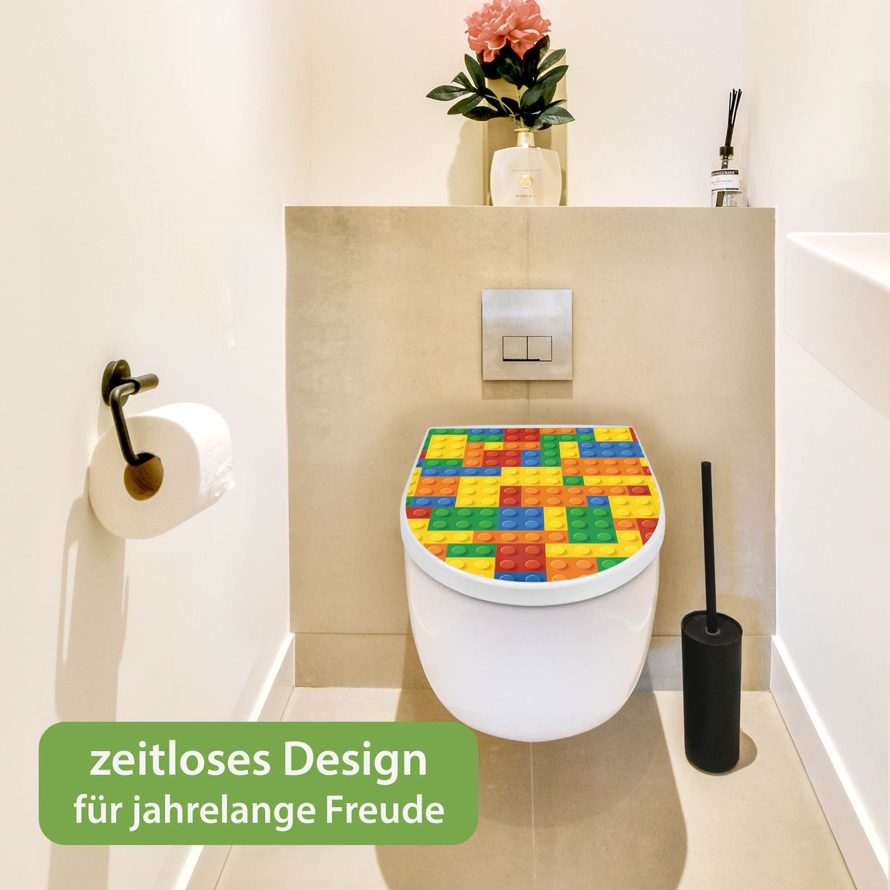 WC Sitz mit Absenkautomatik D Form Motiv Bausteine