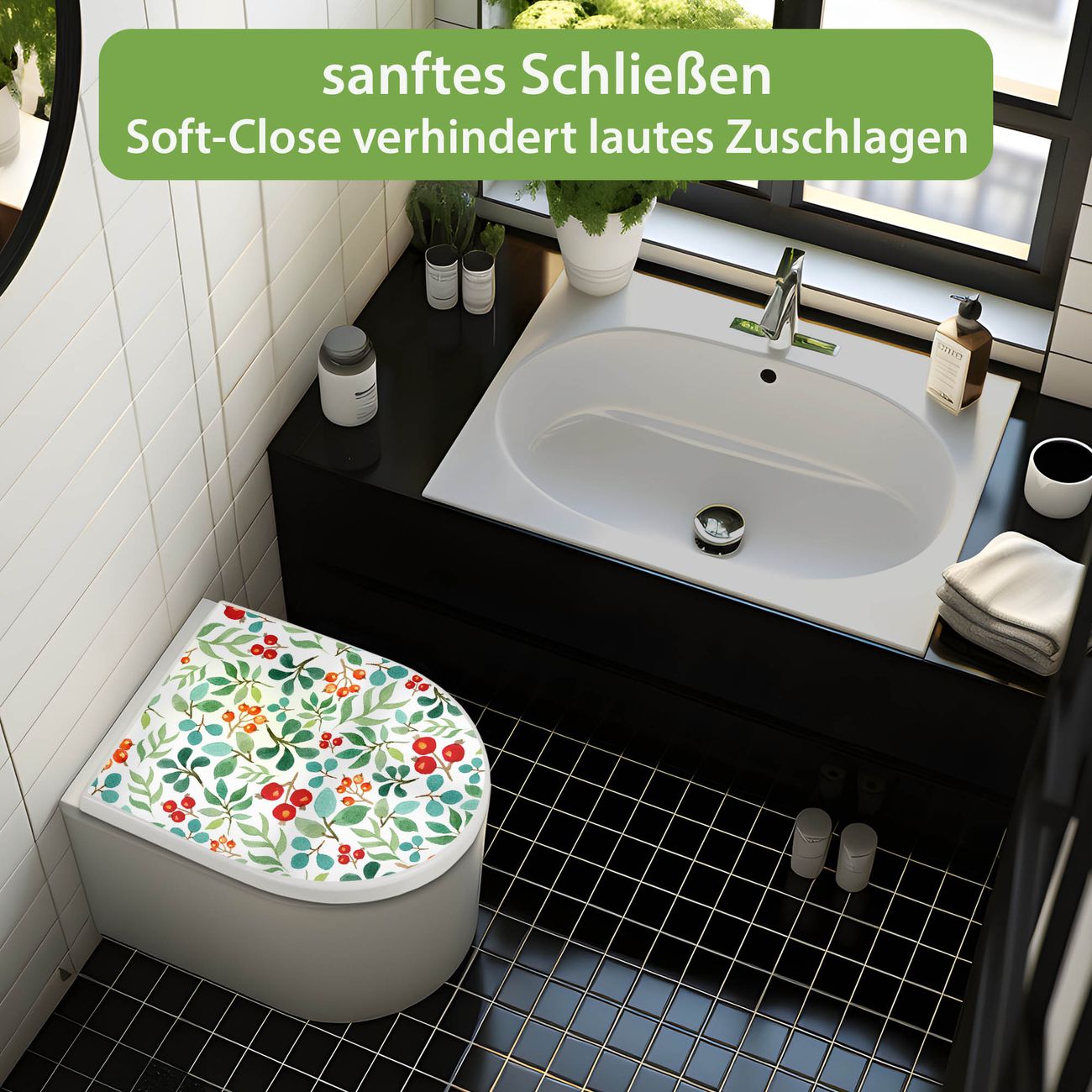WC Sitz mit Absenkautomatik D Form Motiv Beeren und Blätter