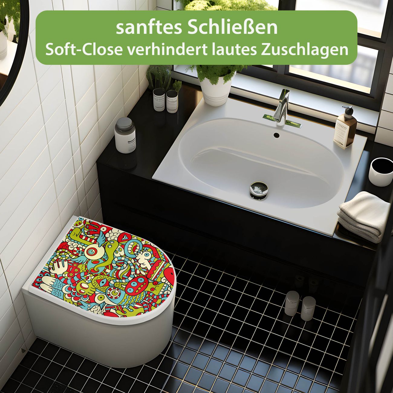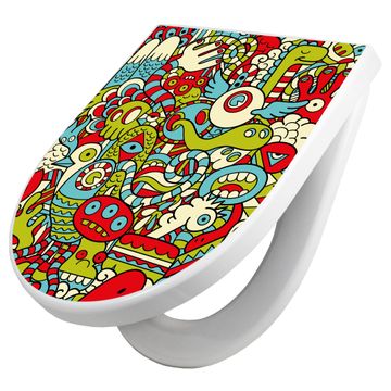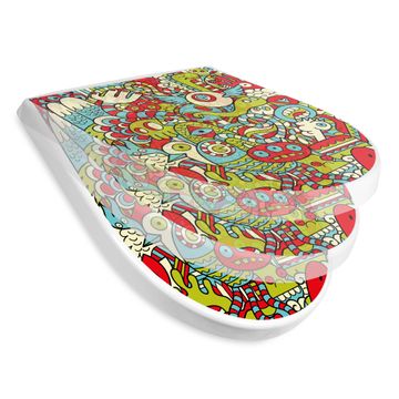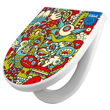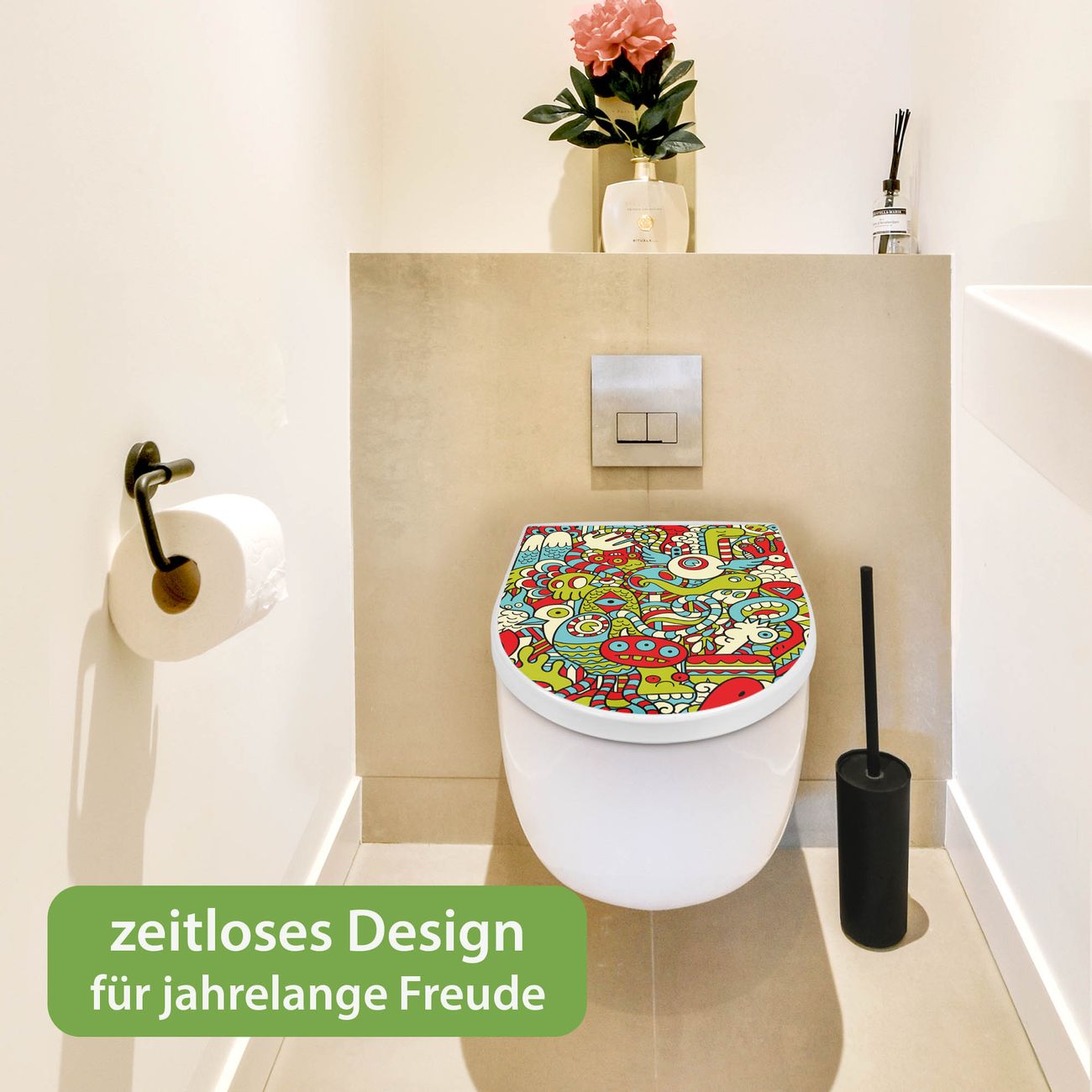 WC Sitz mit Absenkautomatik D Form Motiv Birds Worms Freaks