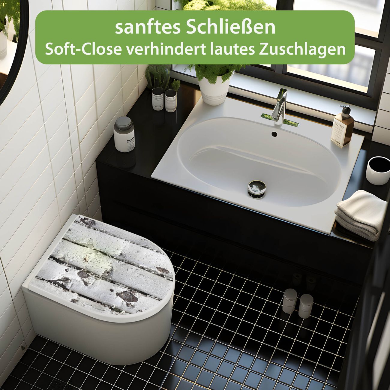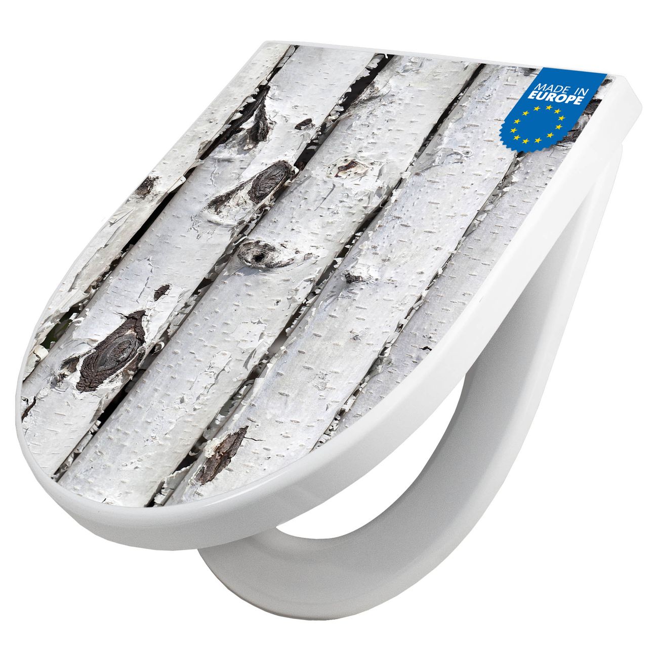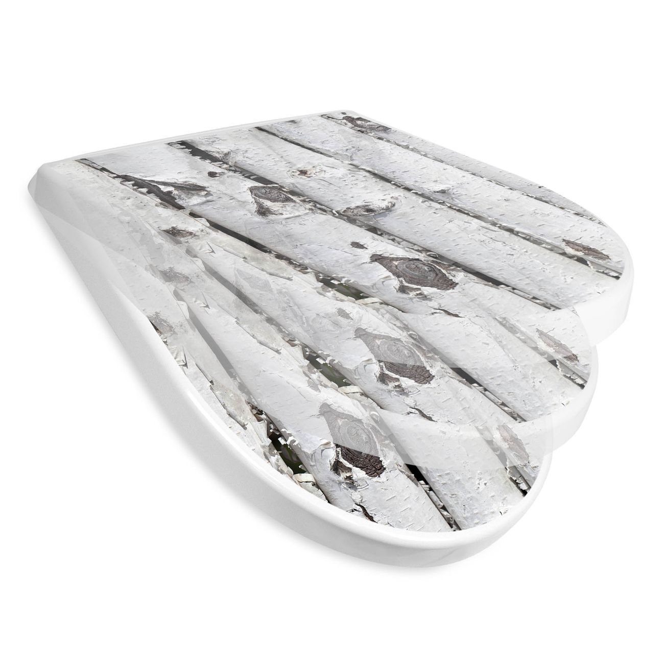 WC Sitz mit Absenkautomatik D Form Motiv Birkenrinde