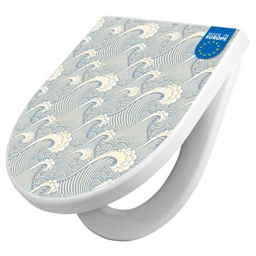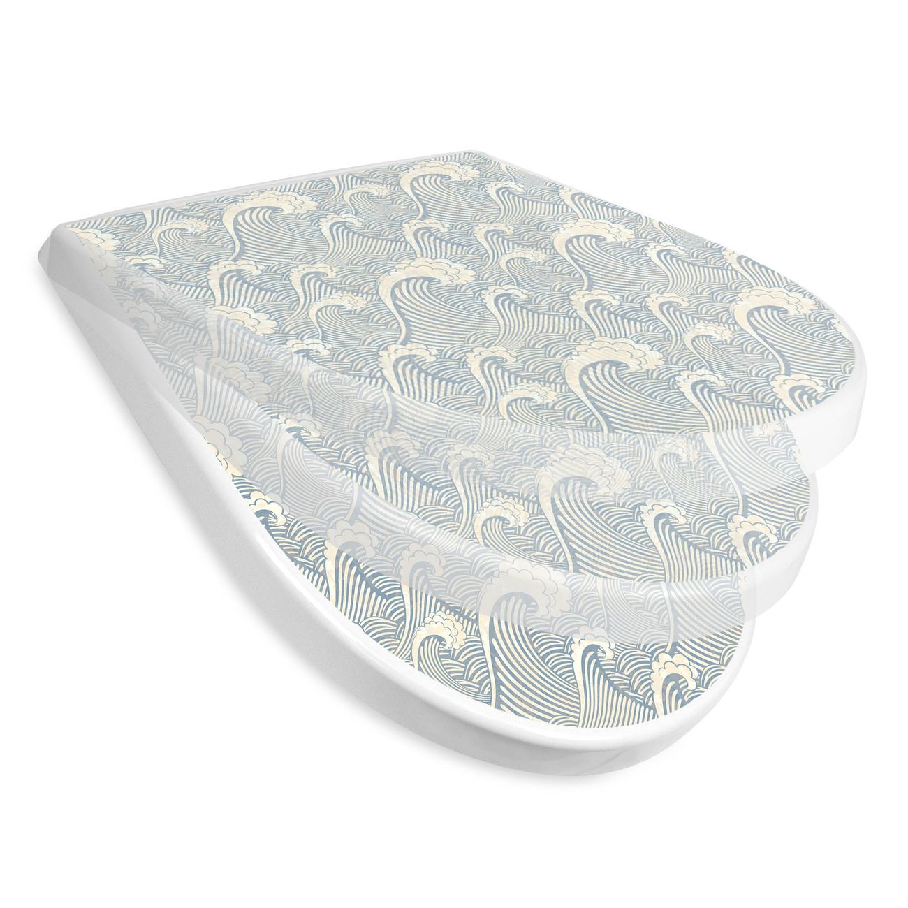 WC Sitz mit Absenkautomatik D Form Motiv Blaue Wellen