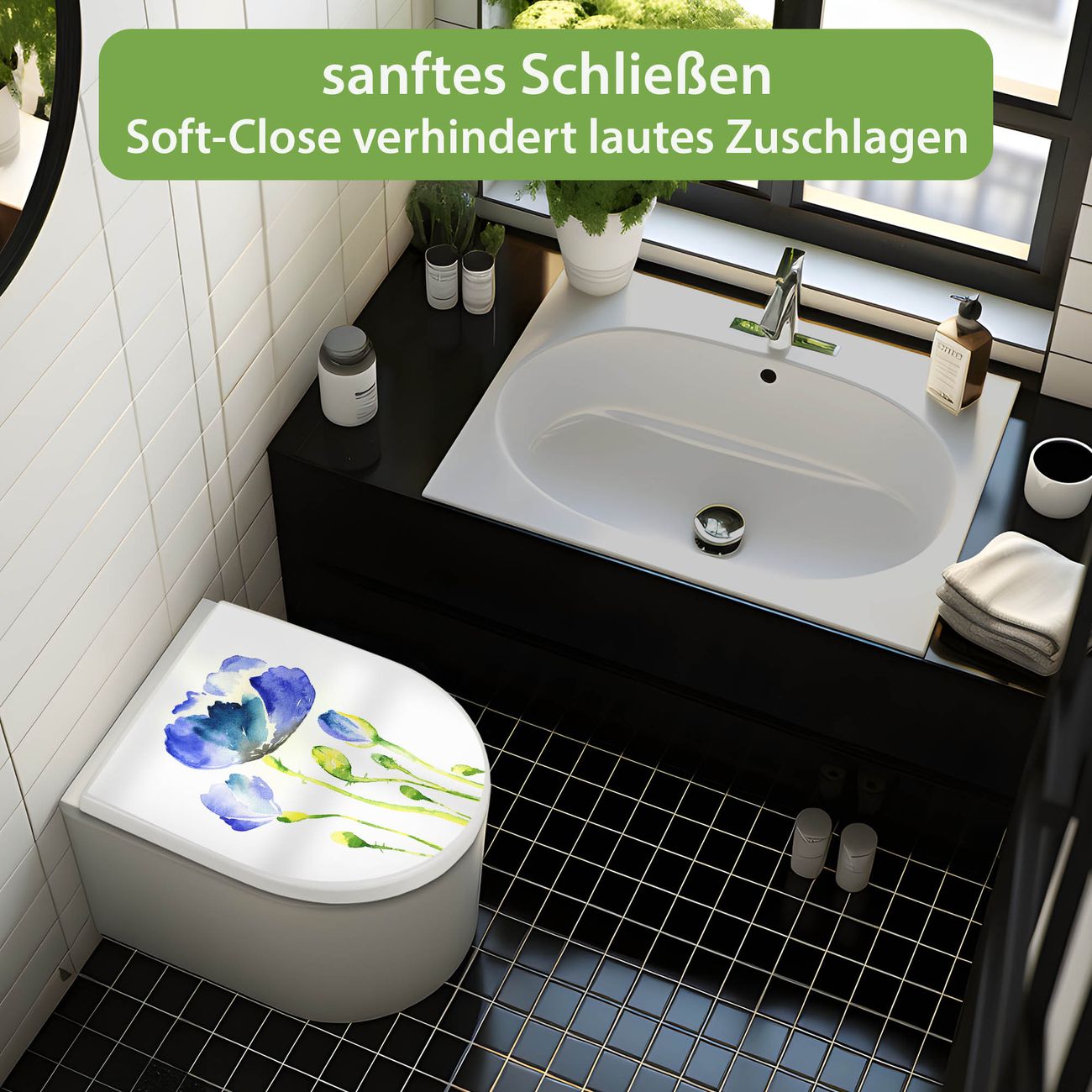 WC Sitz mit Absenkautomatik D Form Motiv Blauer Mohn
