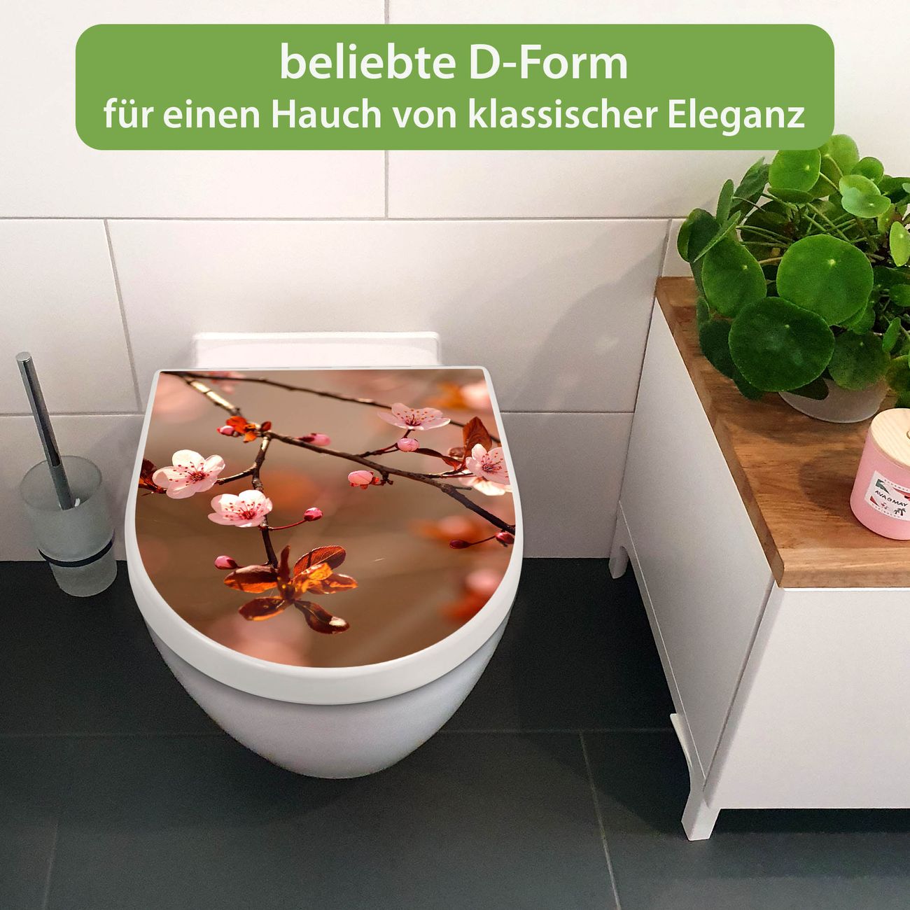WC Sitz mit Absenkautomatik D Form Motiv Blühender Kirschzweig