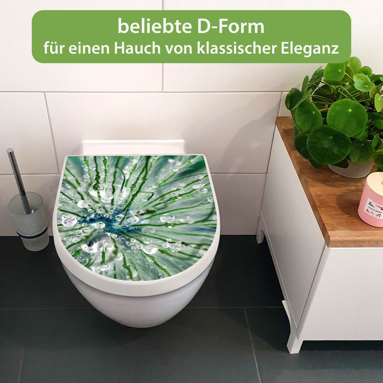 WC Sitz mit Absenkautomatik D Form Motiv Blüte Mit Tautropfen