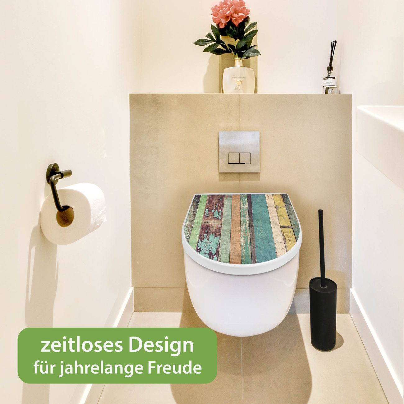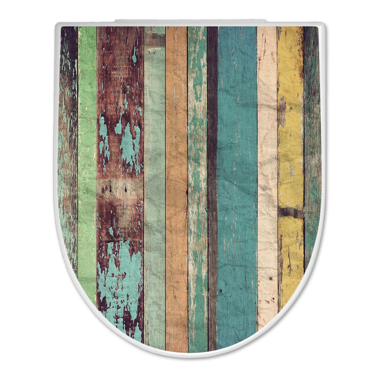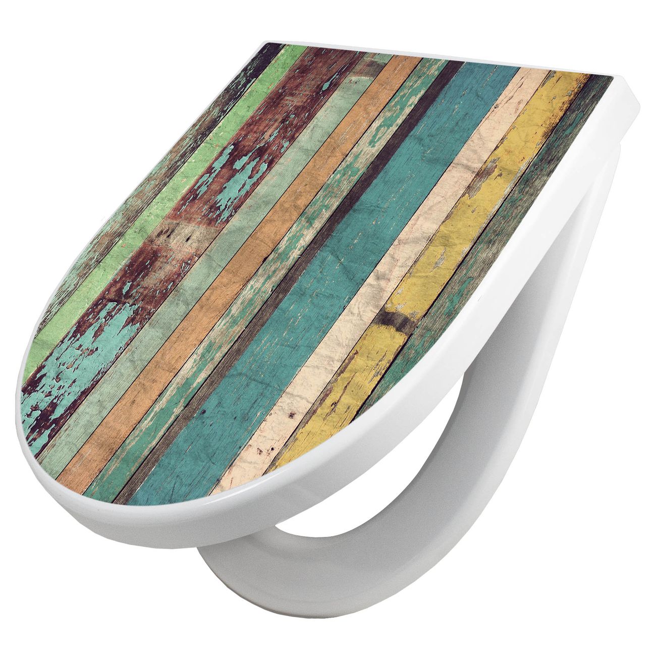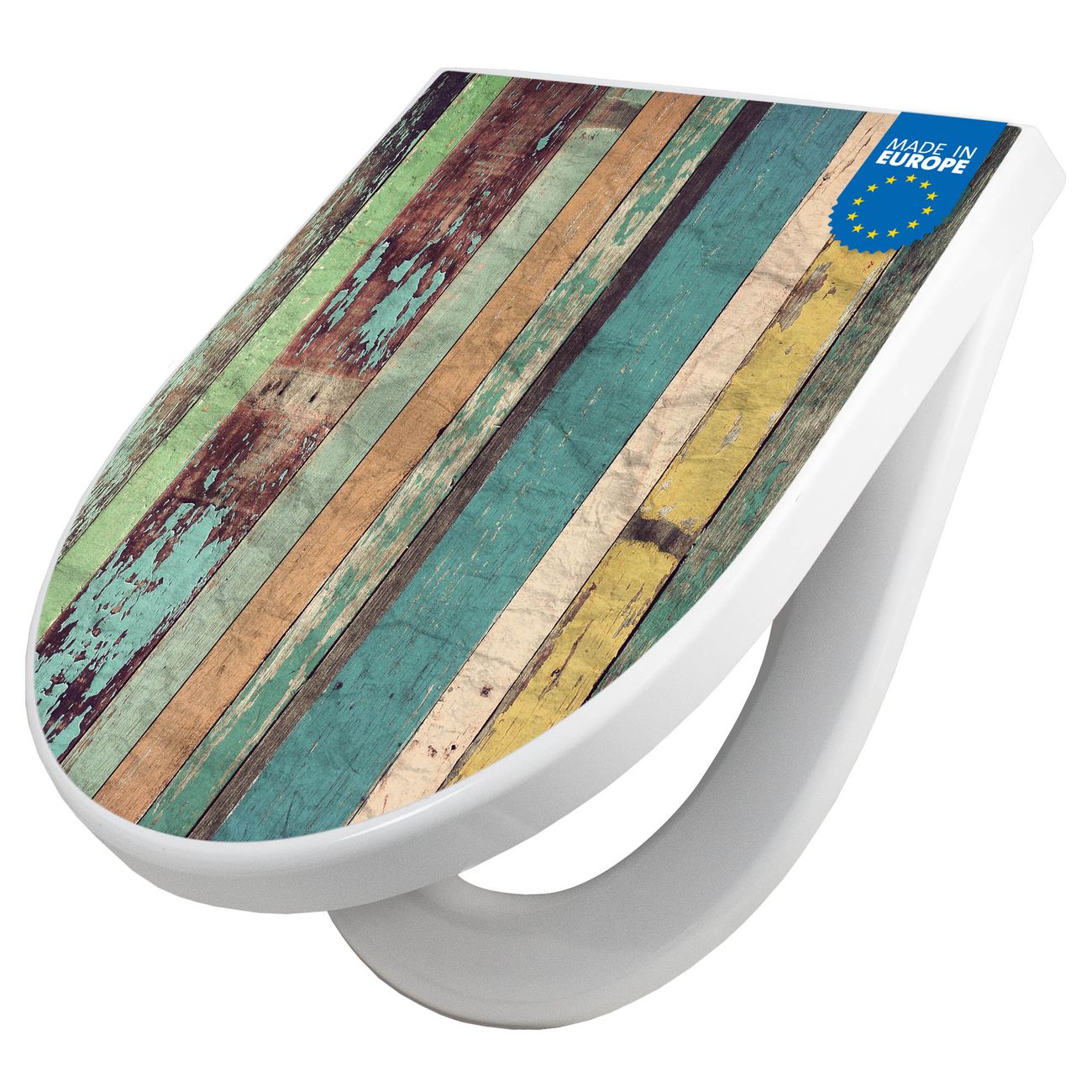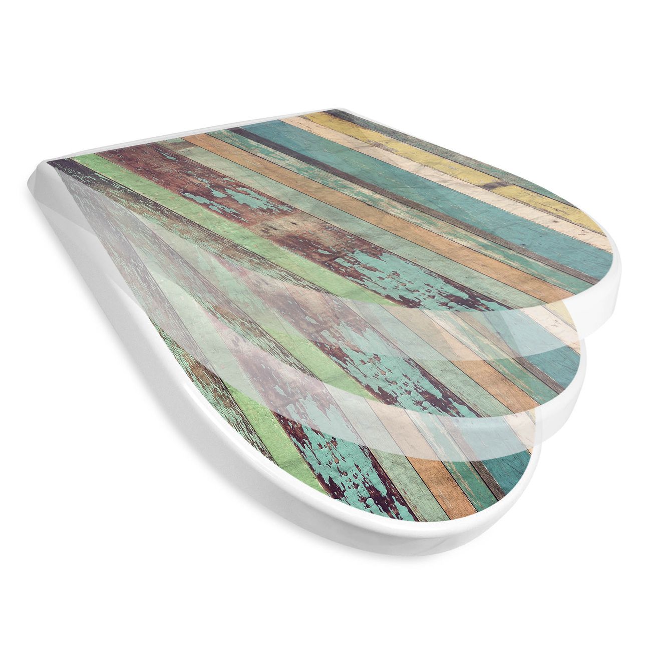 WC Sitz mit Absenkautomatik D Form Motiv Bunte Bretterwand