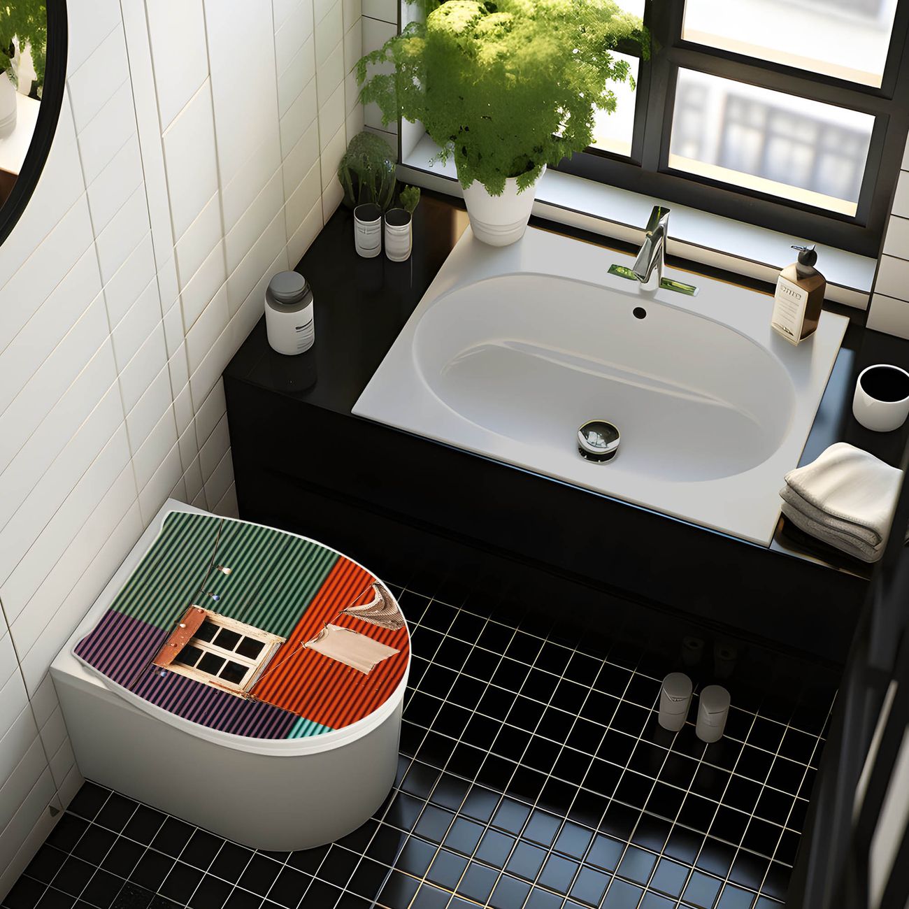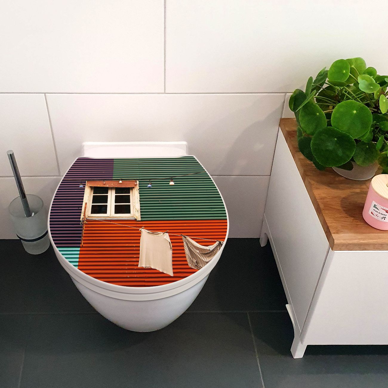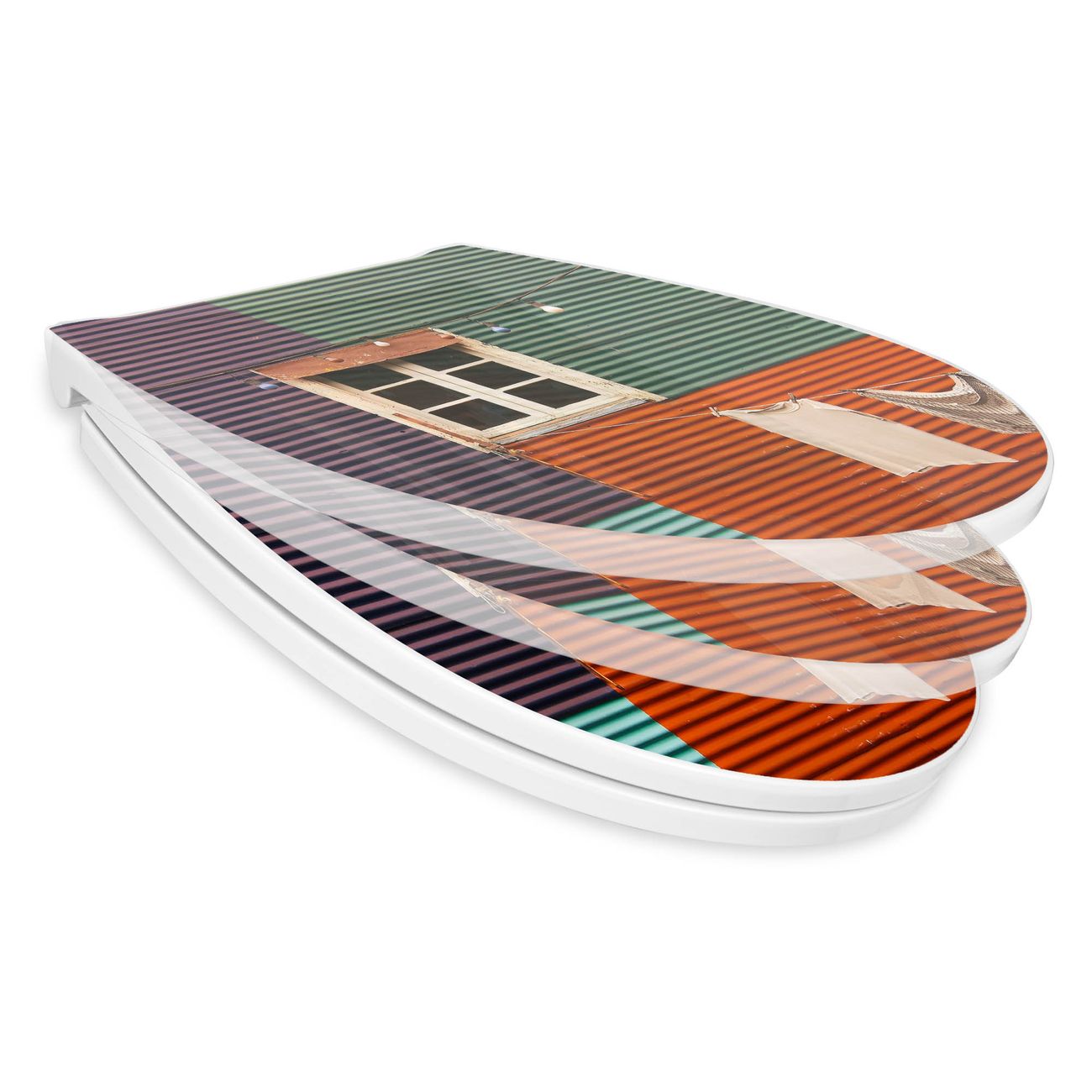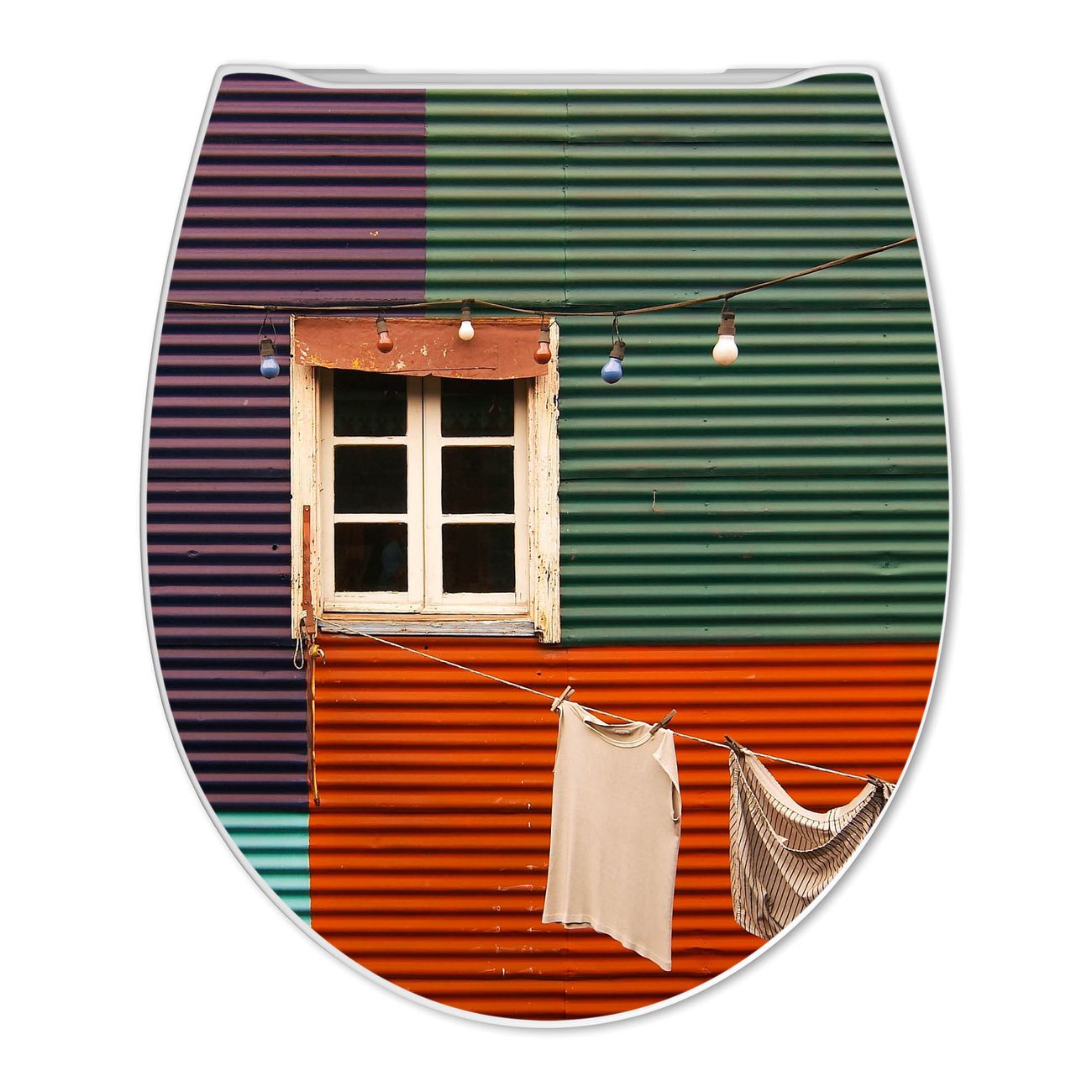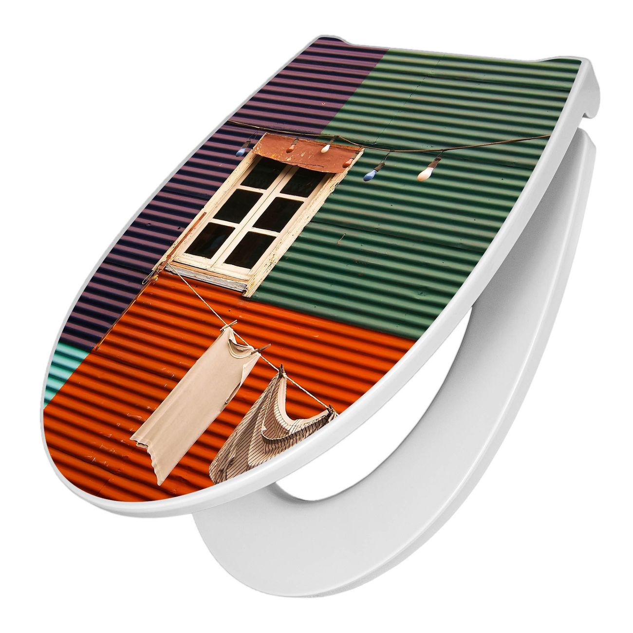 Premium WC-Sitz Softclose Absenkautomatik Motiv Buntes Haus
