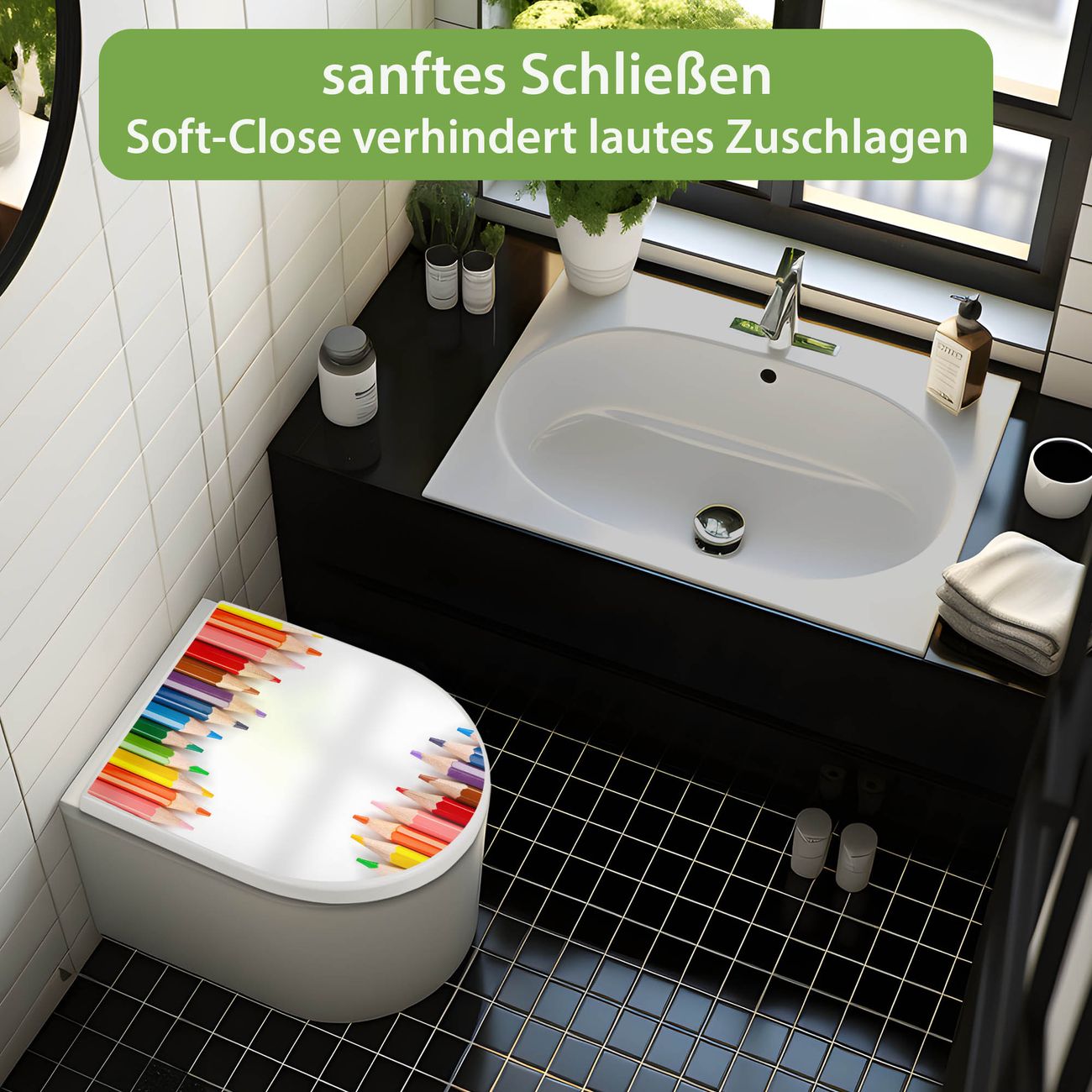 WC Sitz mit Absenkautomatik D Form Motiv Buntstifte