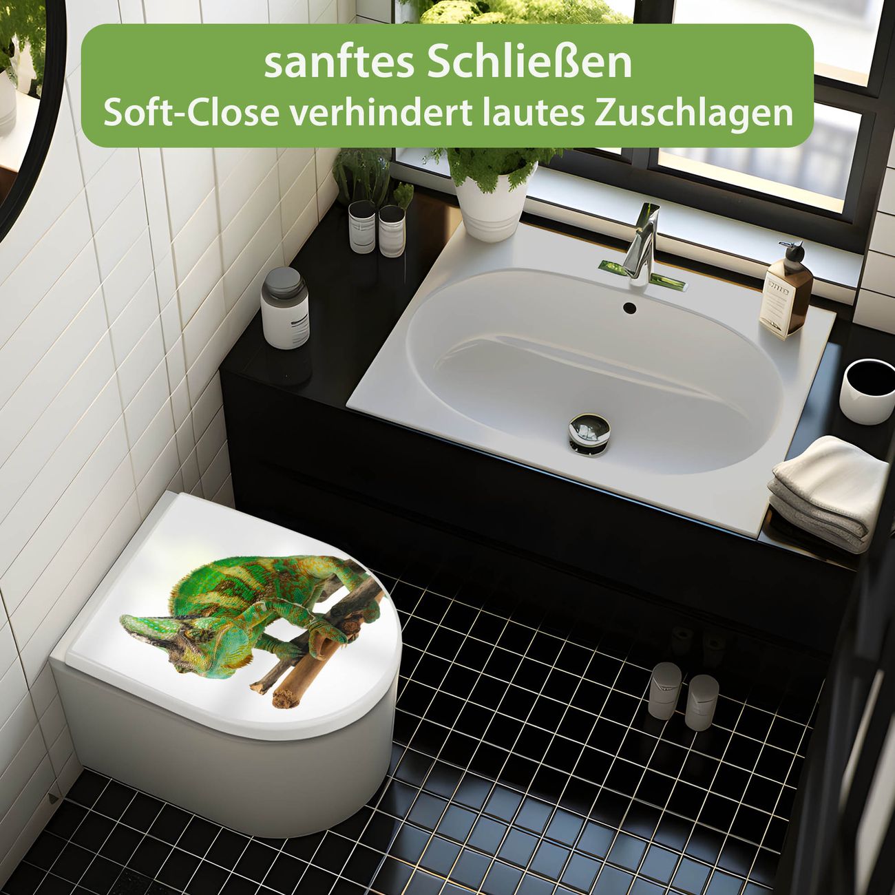 WC Sitz mit Absenkautomatik D Form Motiv Chamäleon