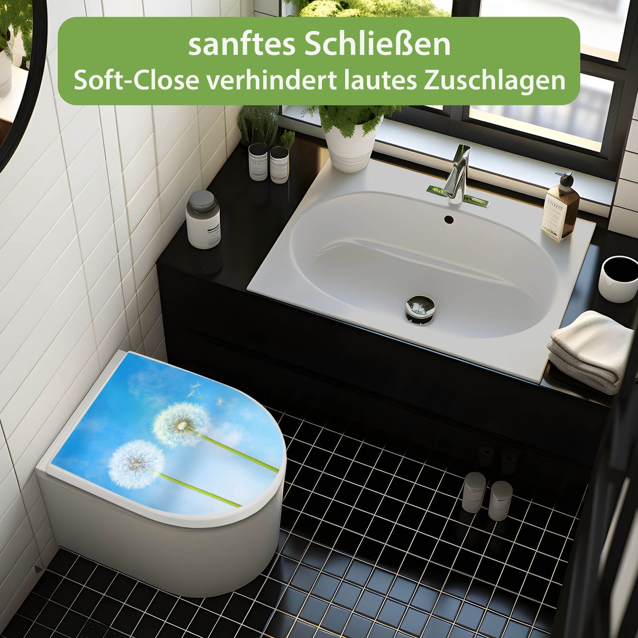 WC Sitz mit Absenkautomatik D Form Motiv Dandelion
