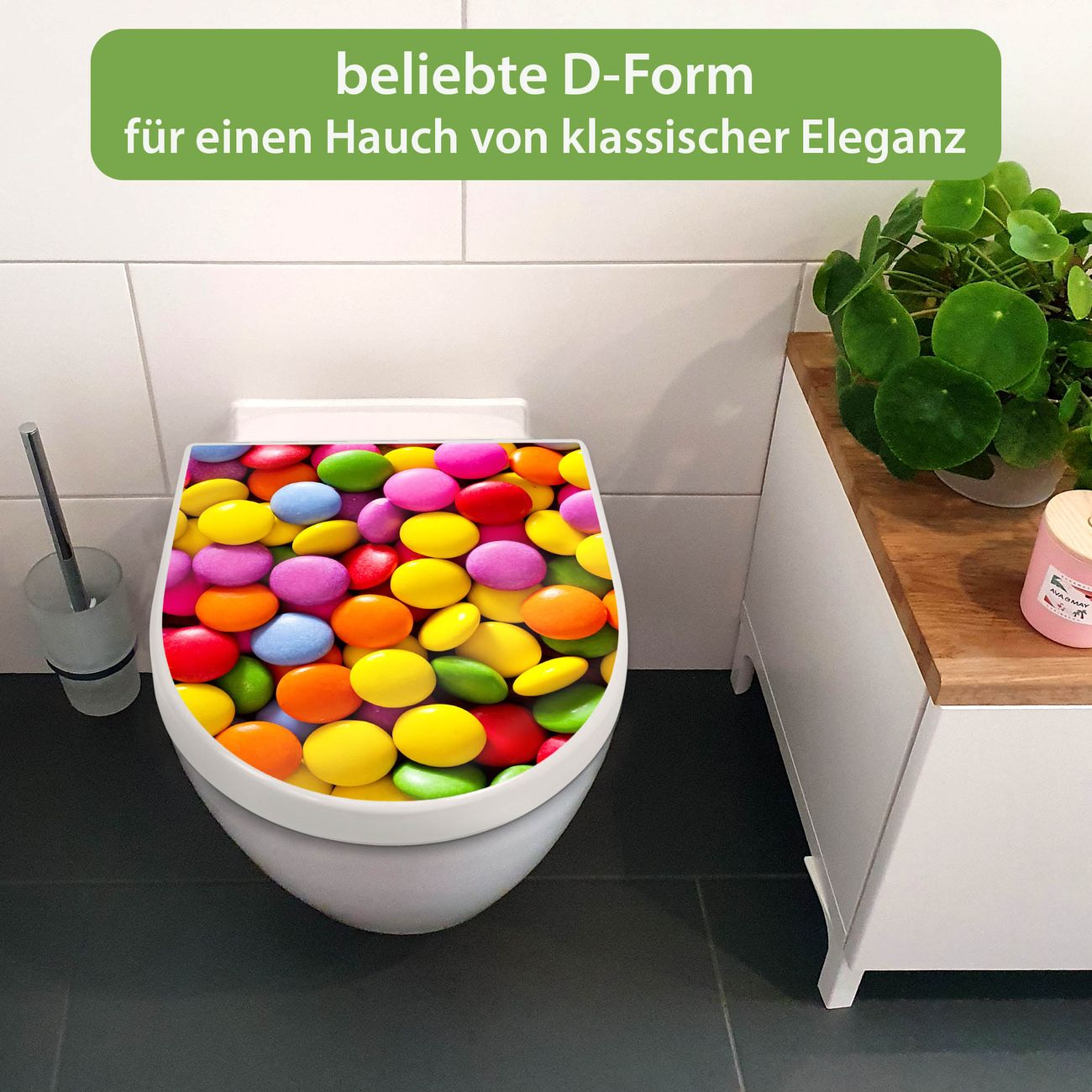 WC Sitz mit Absenkautomatik D Form Motiv Dragees