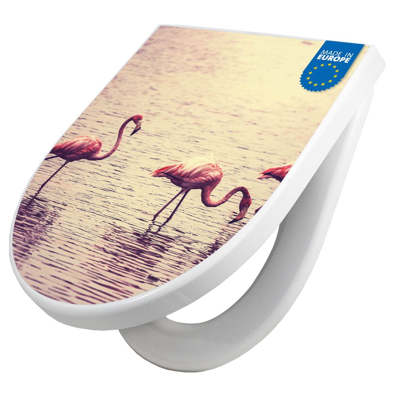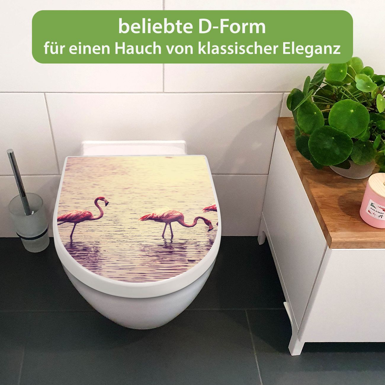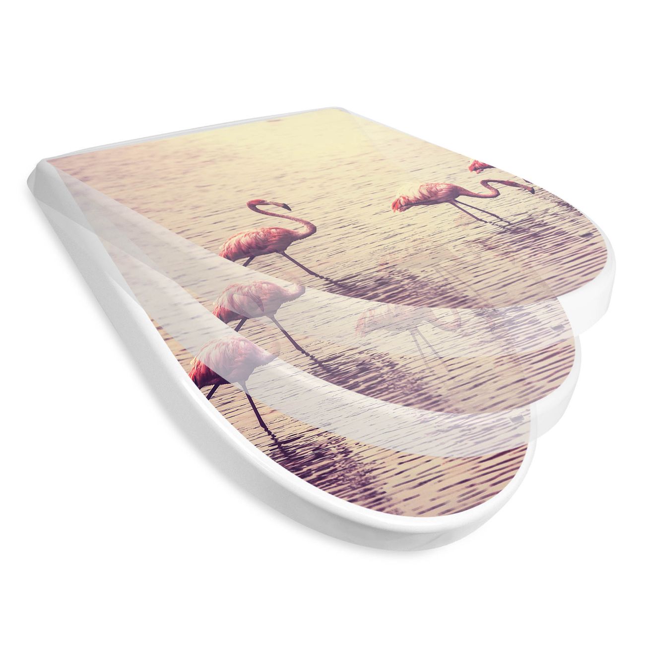 WC Sitz mit Absenkautomatik D Form Motiv Drei Flamnigos