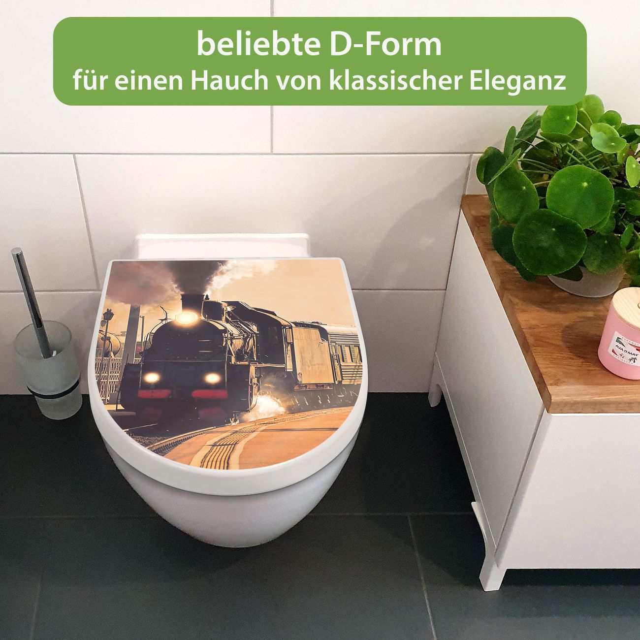 WC Sitz mit Absenkautomatik D Form Motiv Einfahrender Zug