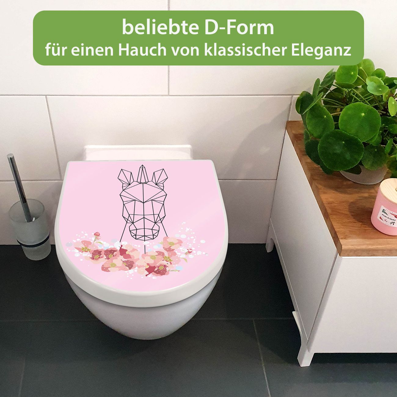 WC Sitz mit Absenkautomatik D Form Motiv Einhorn Poygon