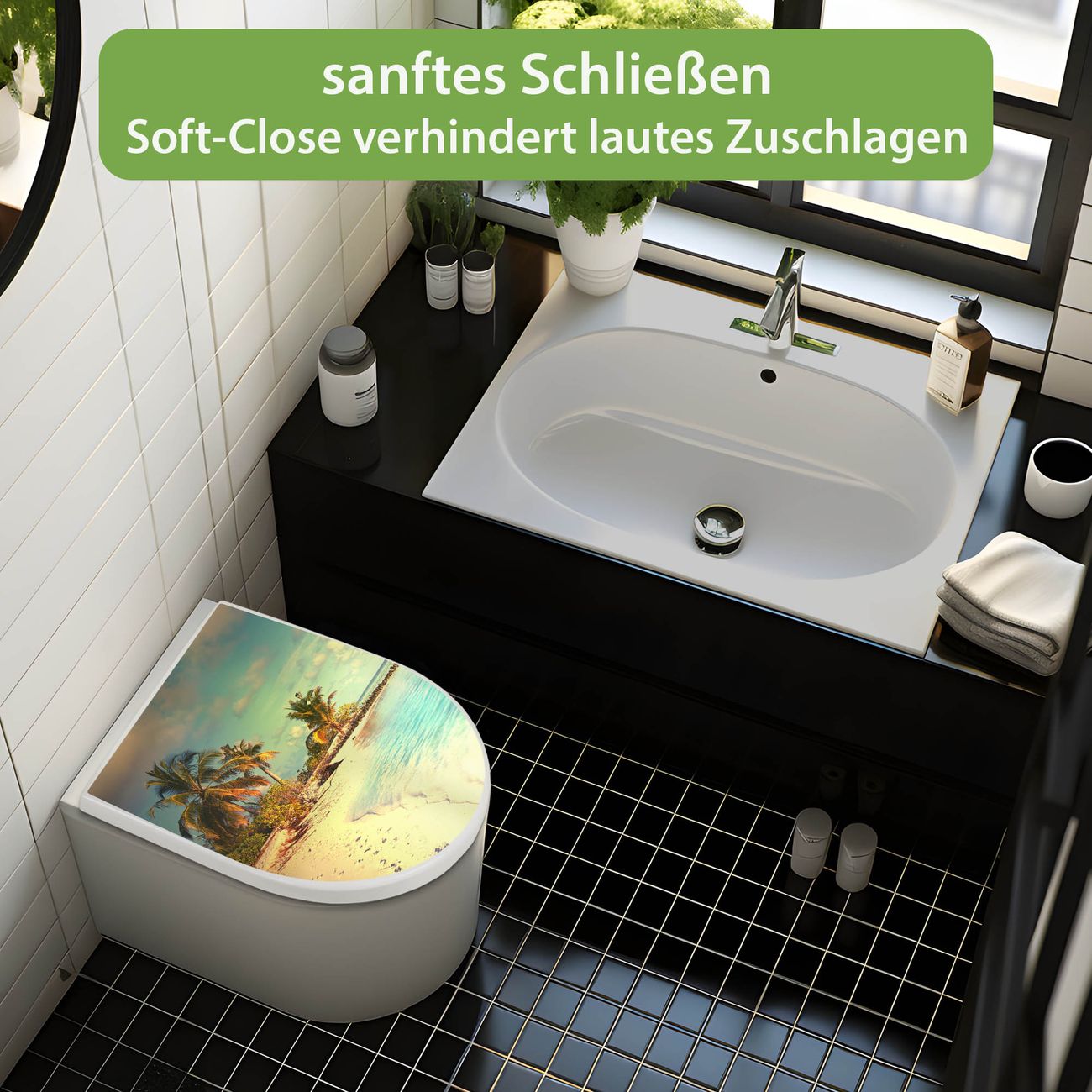 WC Sitz mit Absenkautomatik D Form Motiv Einsame Insel