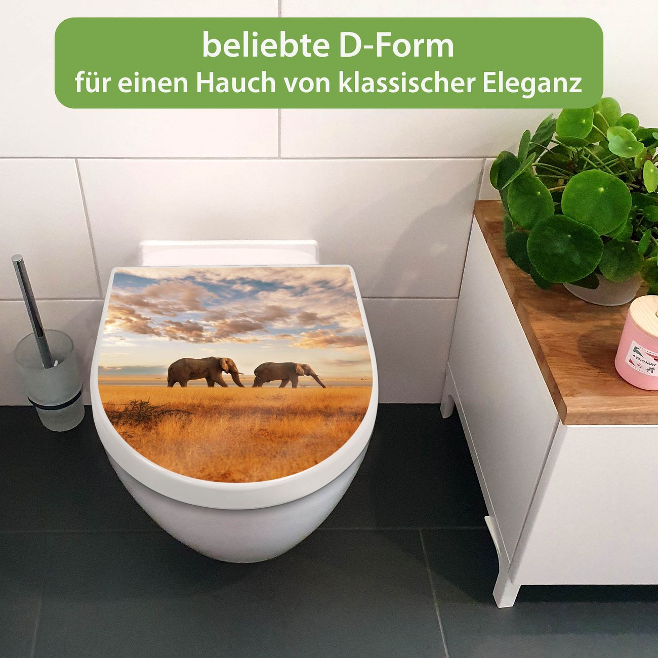 WC Sitz mit Absenkautomatik D Form Motiv Elefanten
