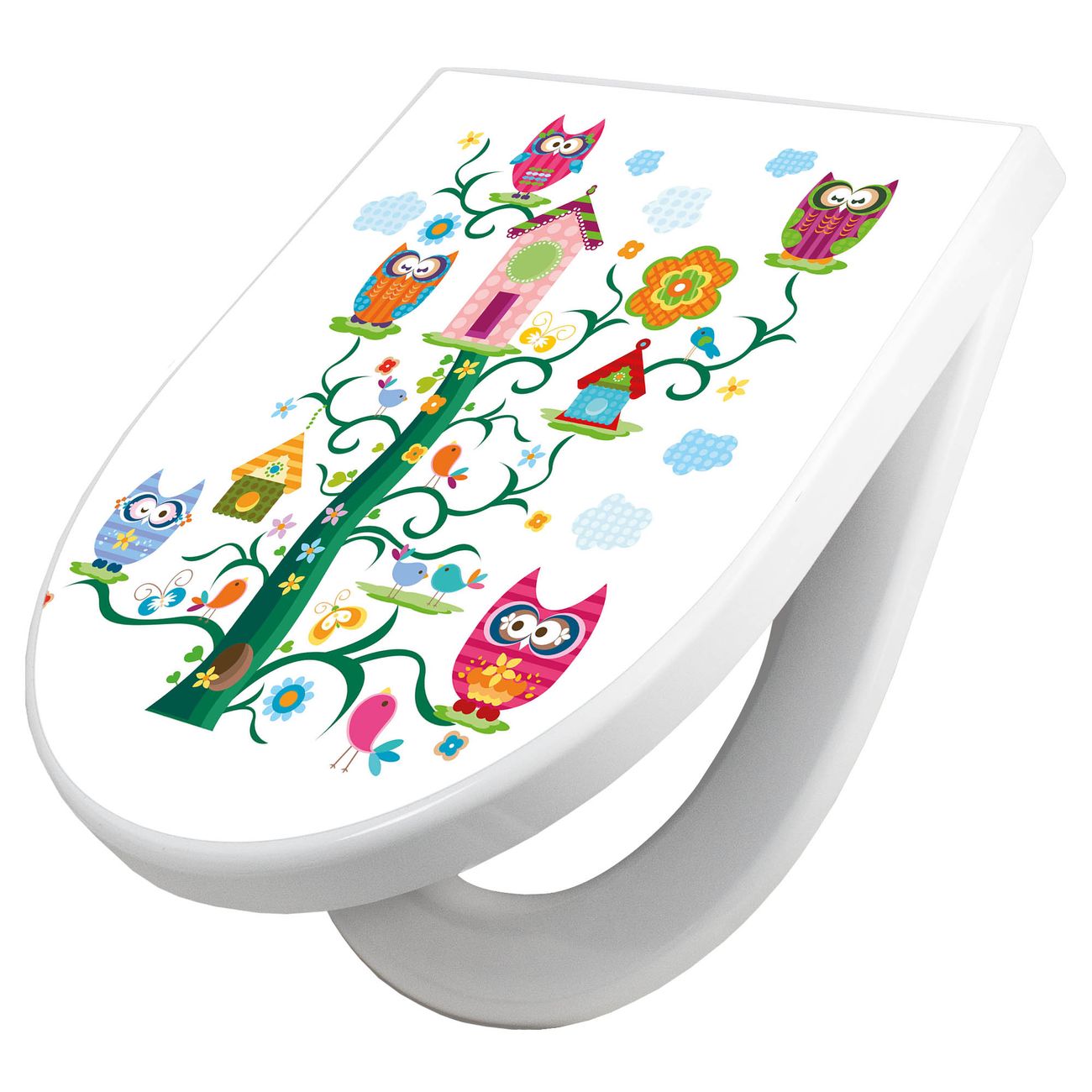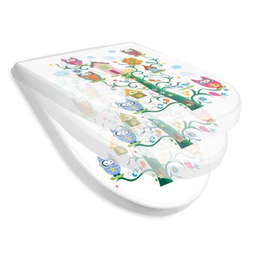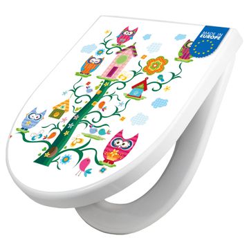 WC Sitz mit Absenkautomatik D Form Motiv Eulenfamilie