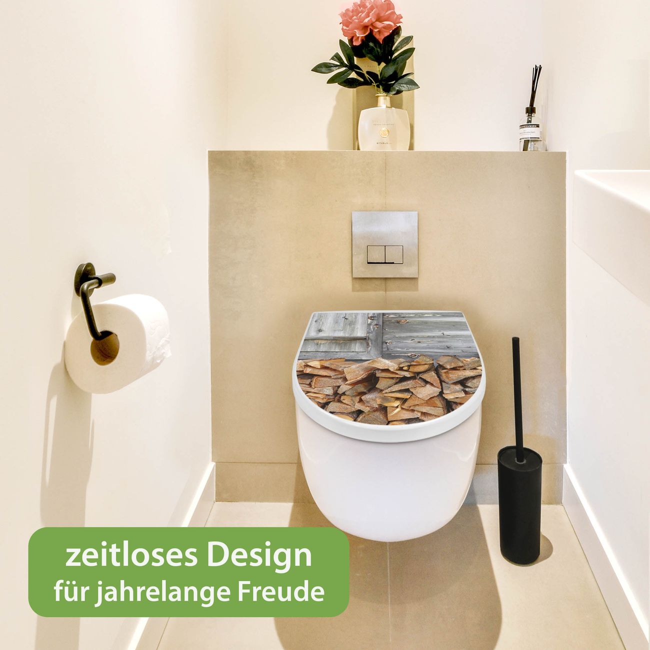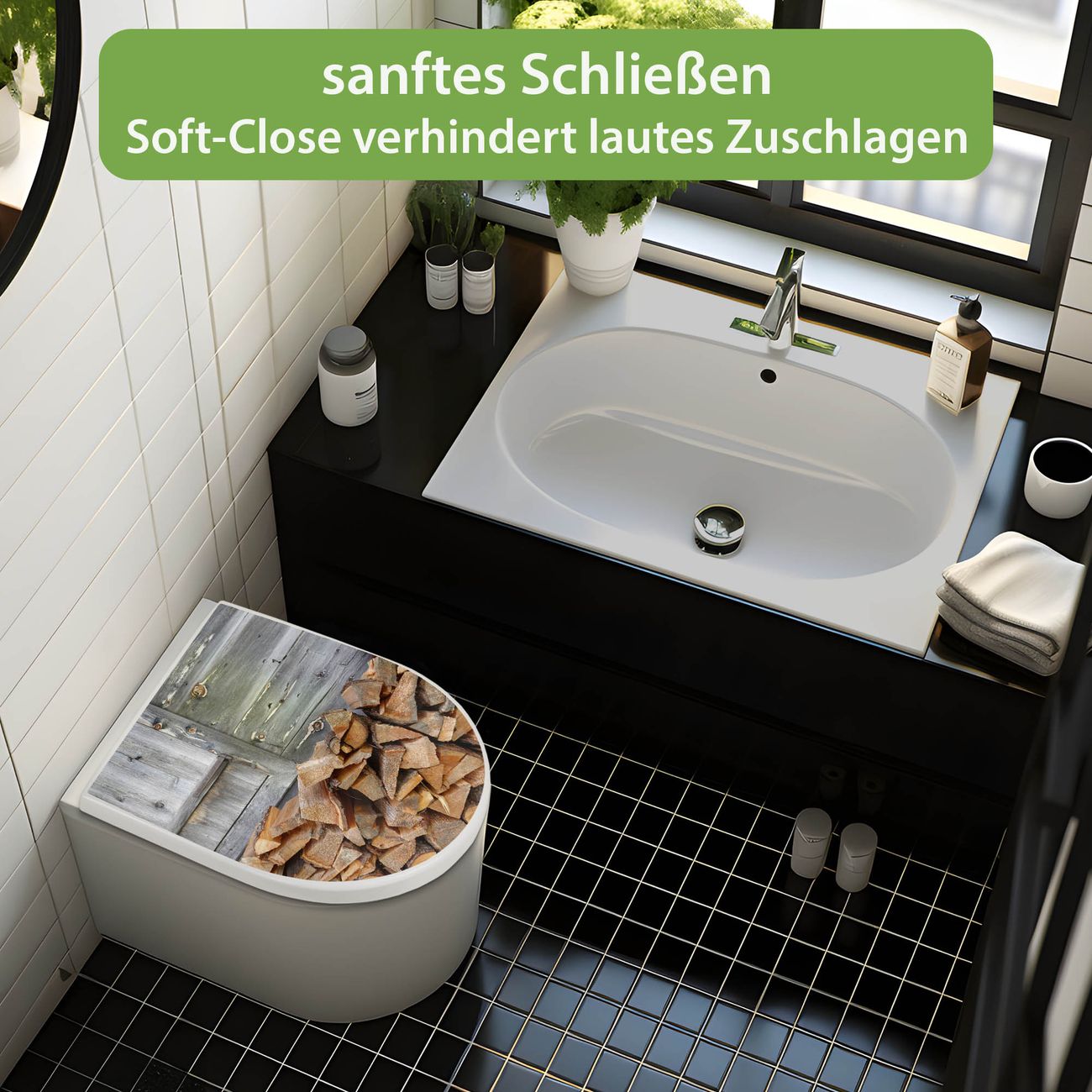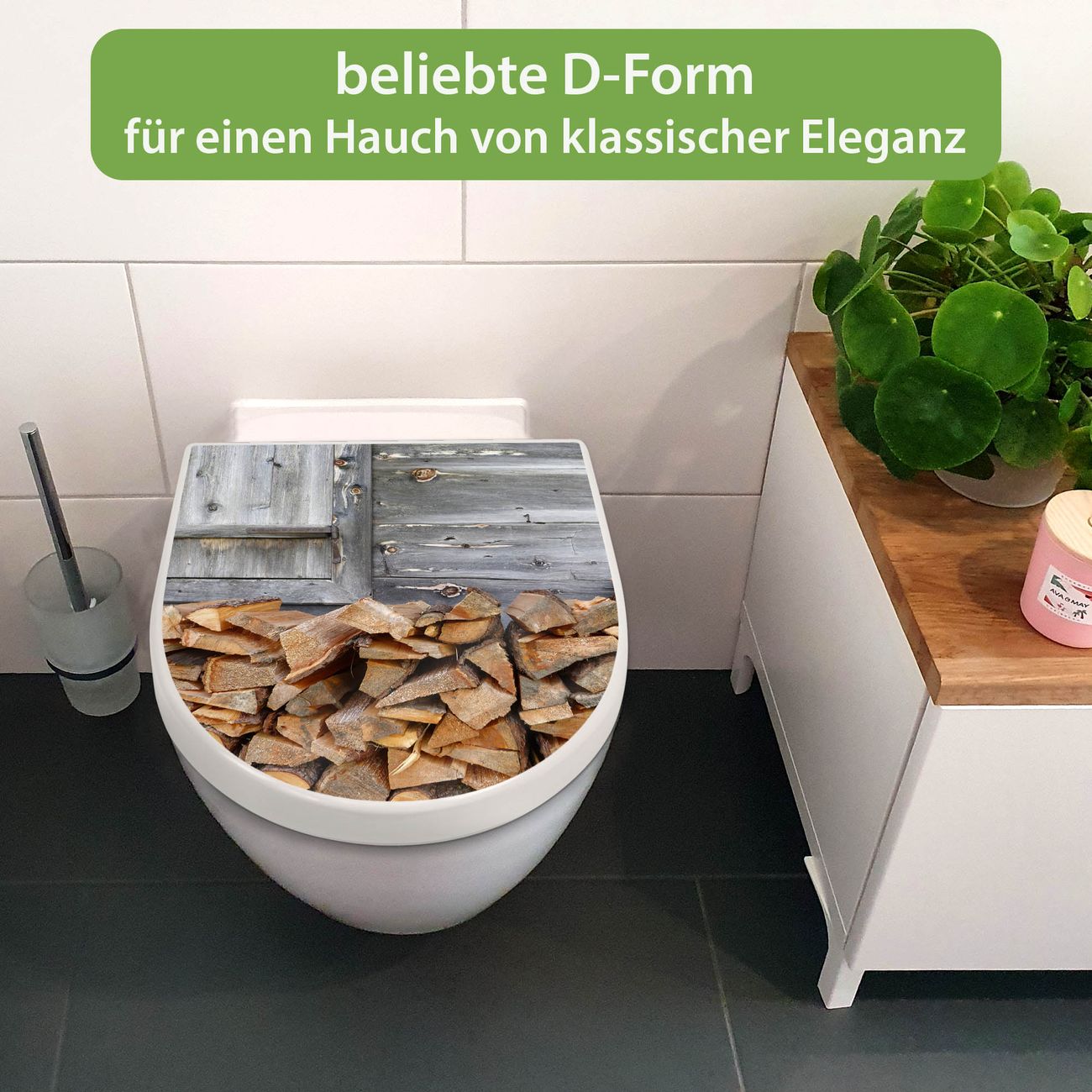 WC Sitz mit Absenkautomatik D Form Motiv Feuerholz