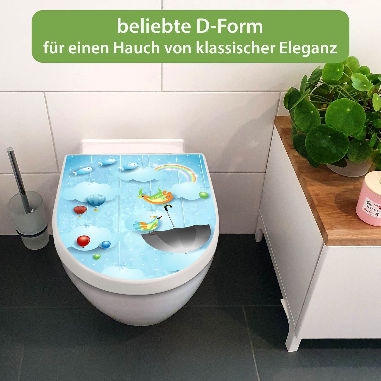 WC Sitz mit Absenkautomatik D Form Motiv fliegender Regenschirm
