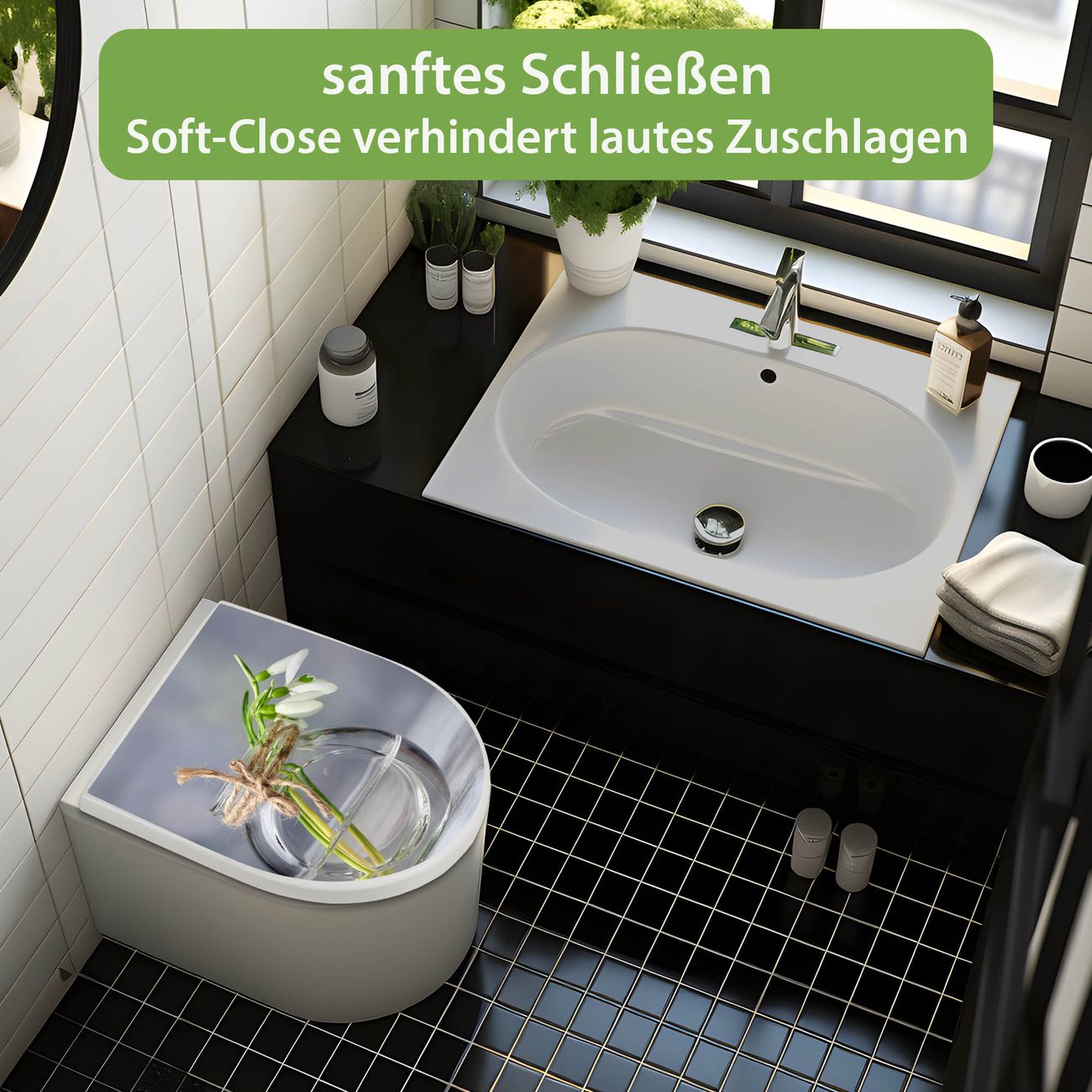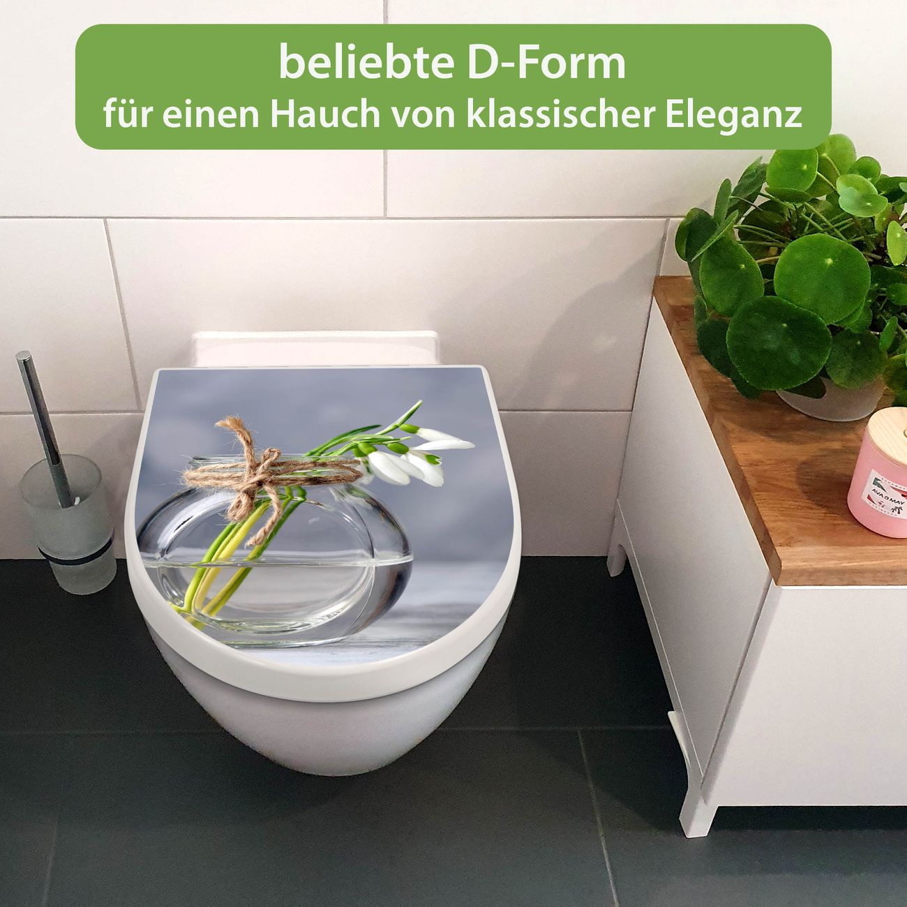 WC Sitz mit Absenkautomatik D Form Motiv Gänseblümchen im Glas