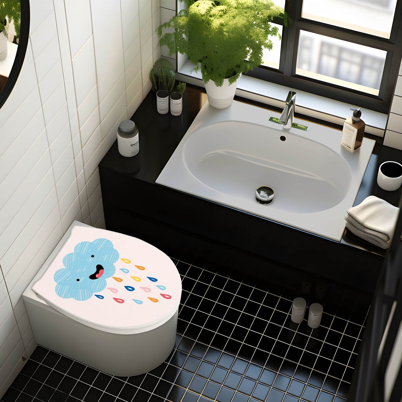 Premium WC-Sitz Softclose Absenkautomatik Motiv glückliche Regenwolke