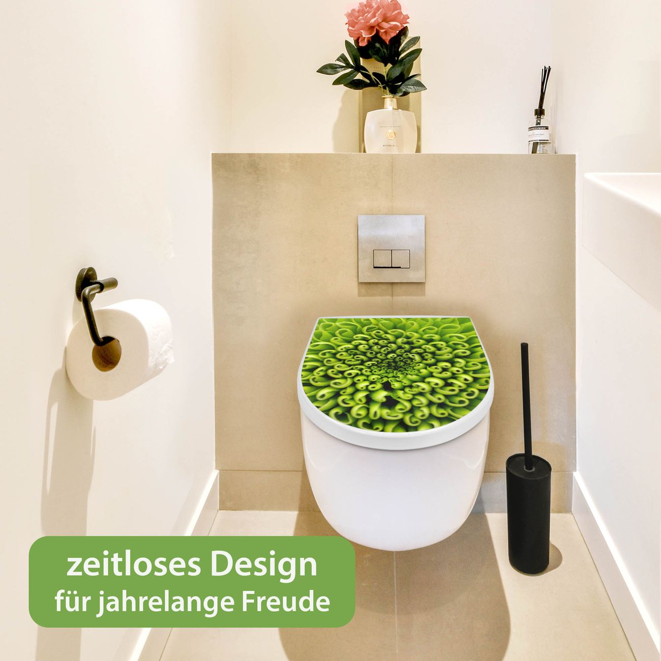 WC Sitz mit Absenkautomatik D Form Motiv Grüne Chrysantheme