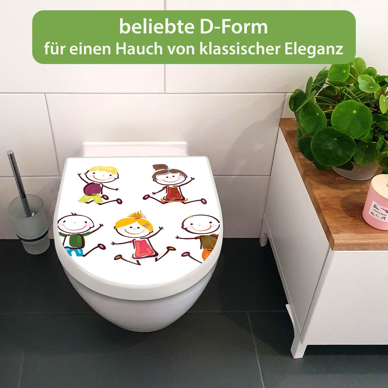WC Sitz mit Absenkautomatik D Form Motiv Happy Kids