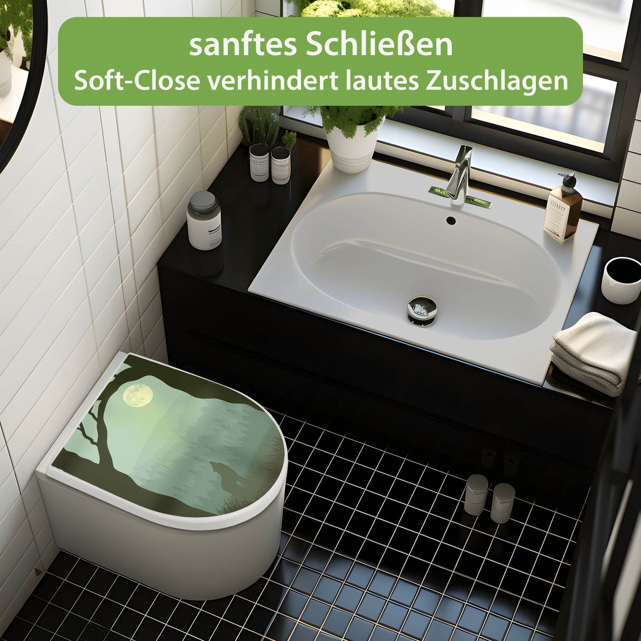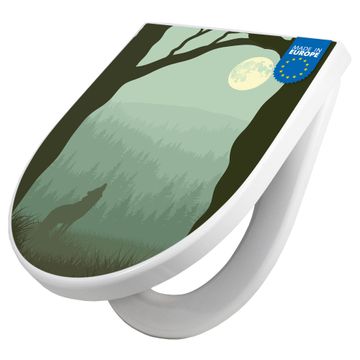 WC Sitz mit Absenkautomatik D Form Motiv Heulender Wolf