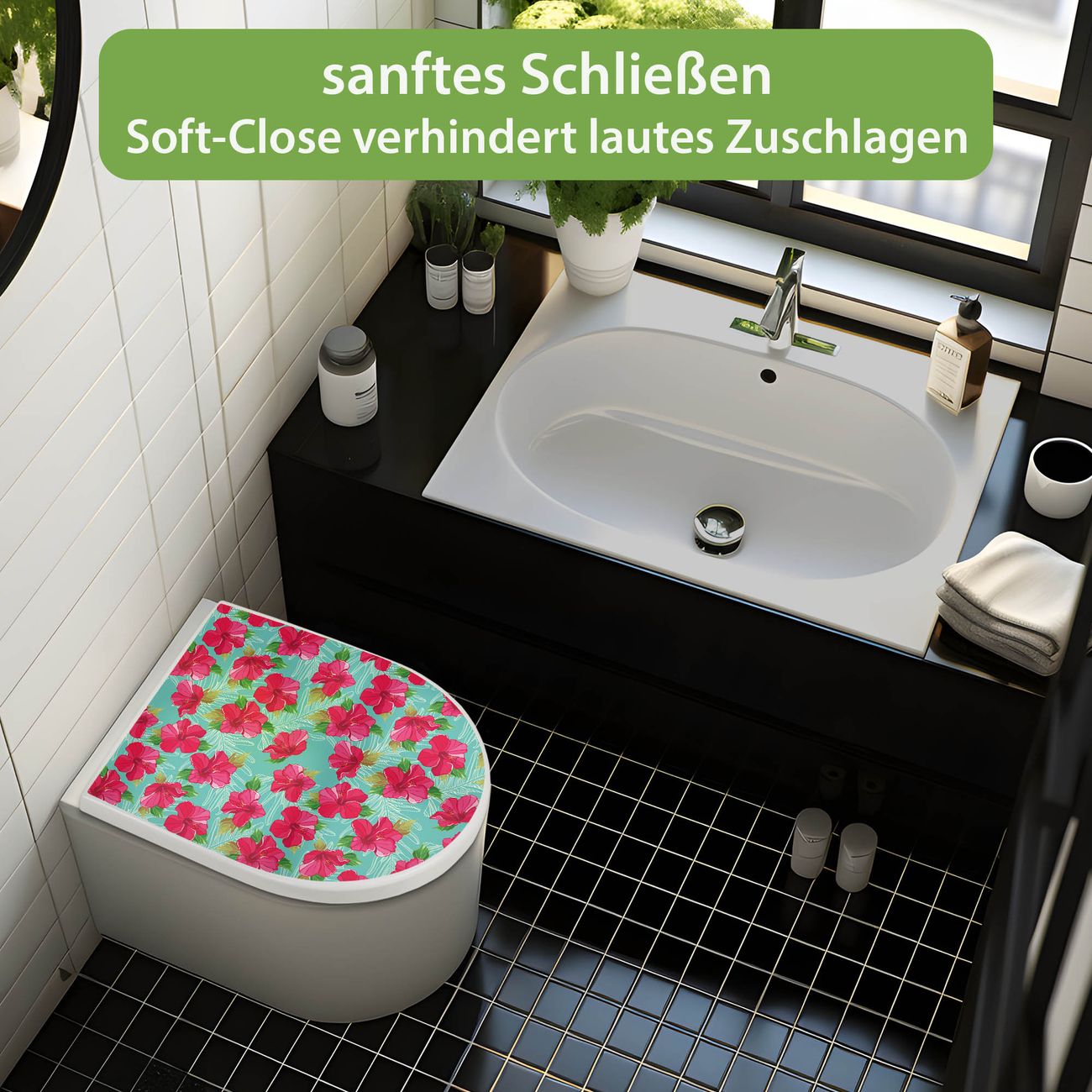 WC Sitz mit Absenkautomatik D Form Motiv Hibiskus