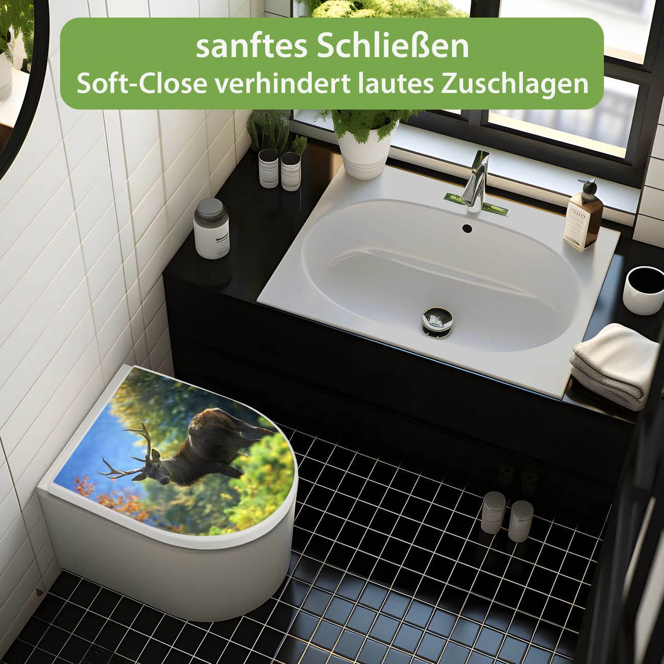 WC Sitz mit Absenkautomatik D Form Motiv Hirsch