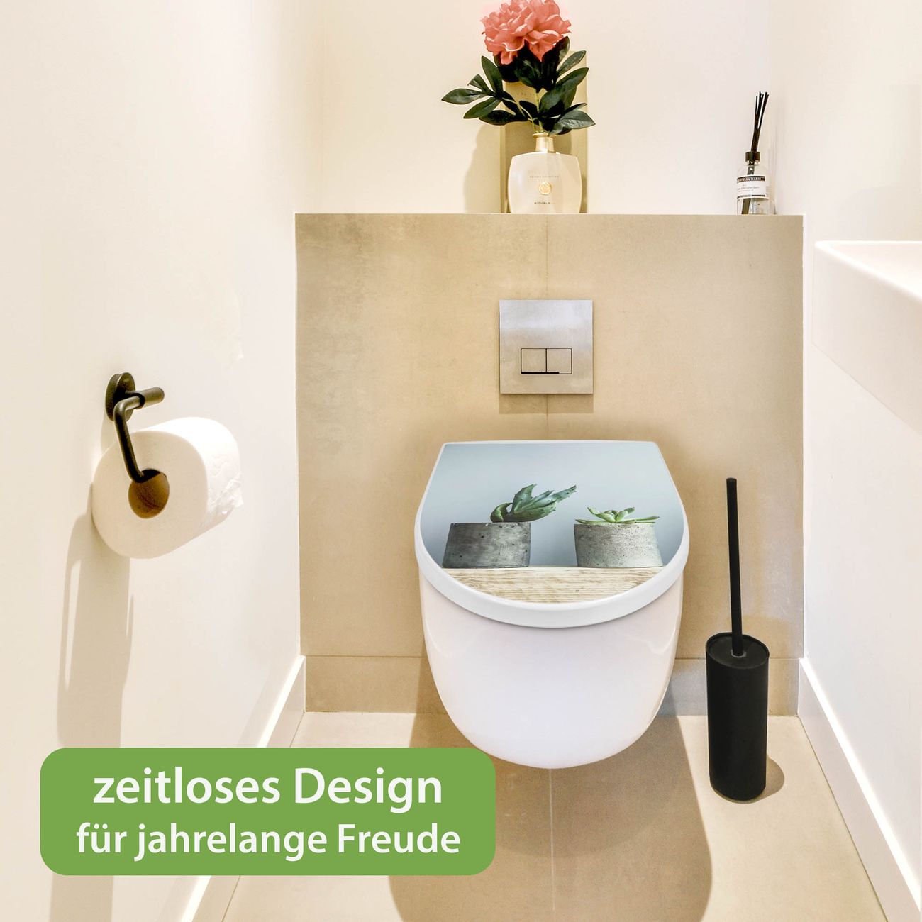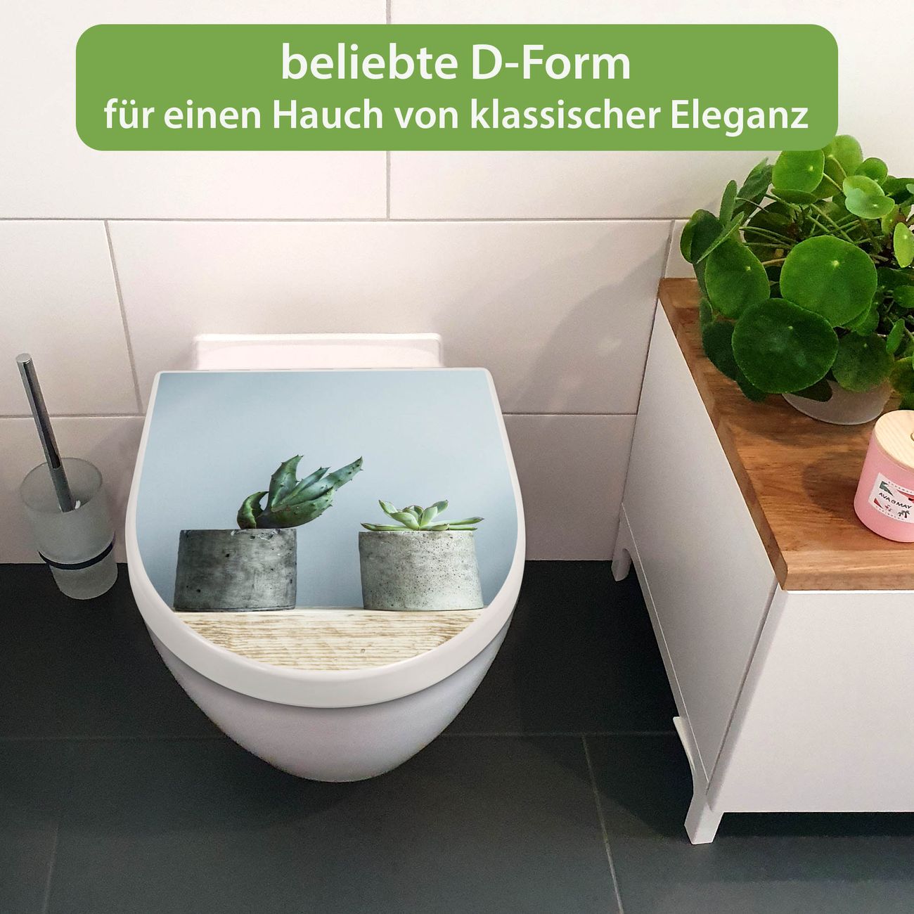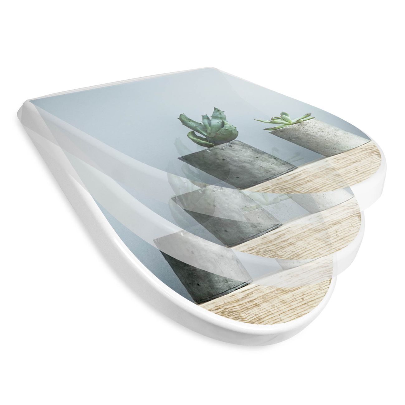 WC Sitz mit Absenkautomatik D Form Motiv Kakteen in Beton