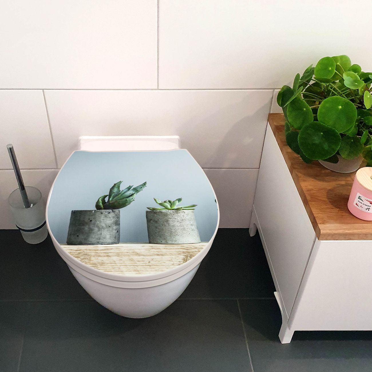 Premium WC-Sitz Softclose Absenkautomatik Motiv Kakteen in Beton