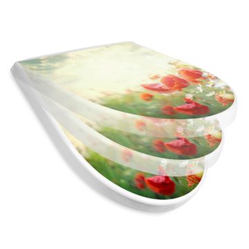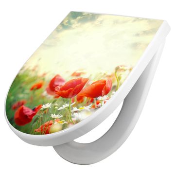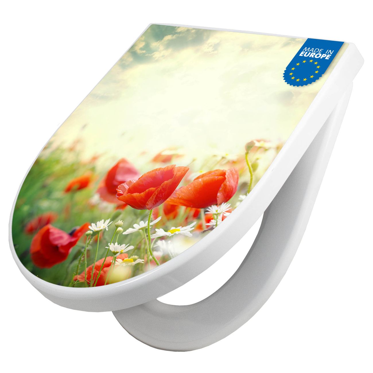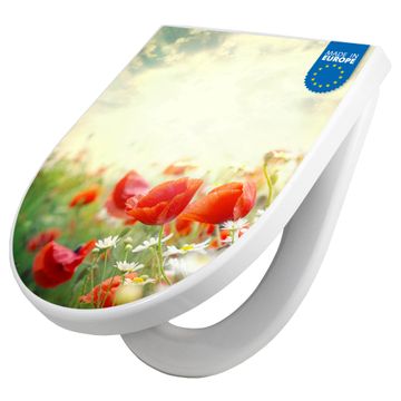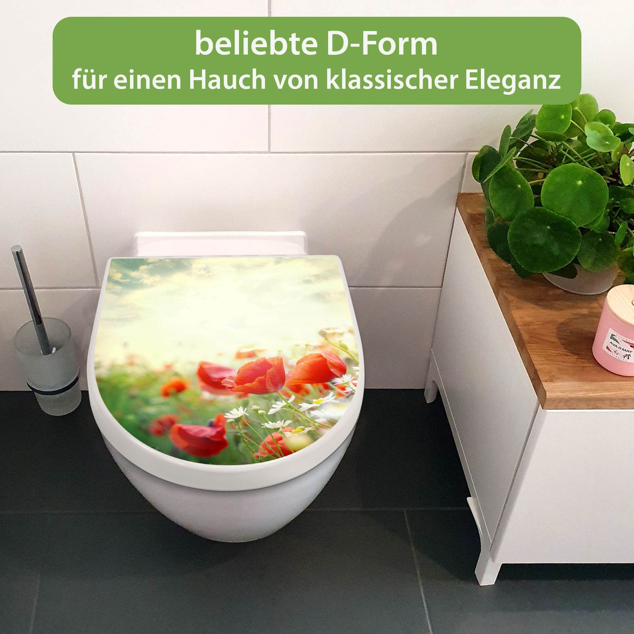 WC Sitz mit Absenkautomatik D Form Motiv Kamille Und Mohn