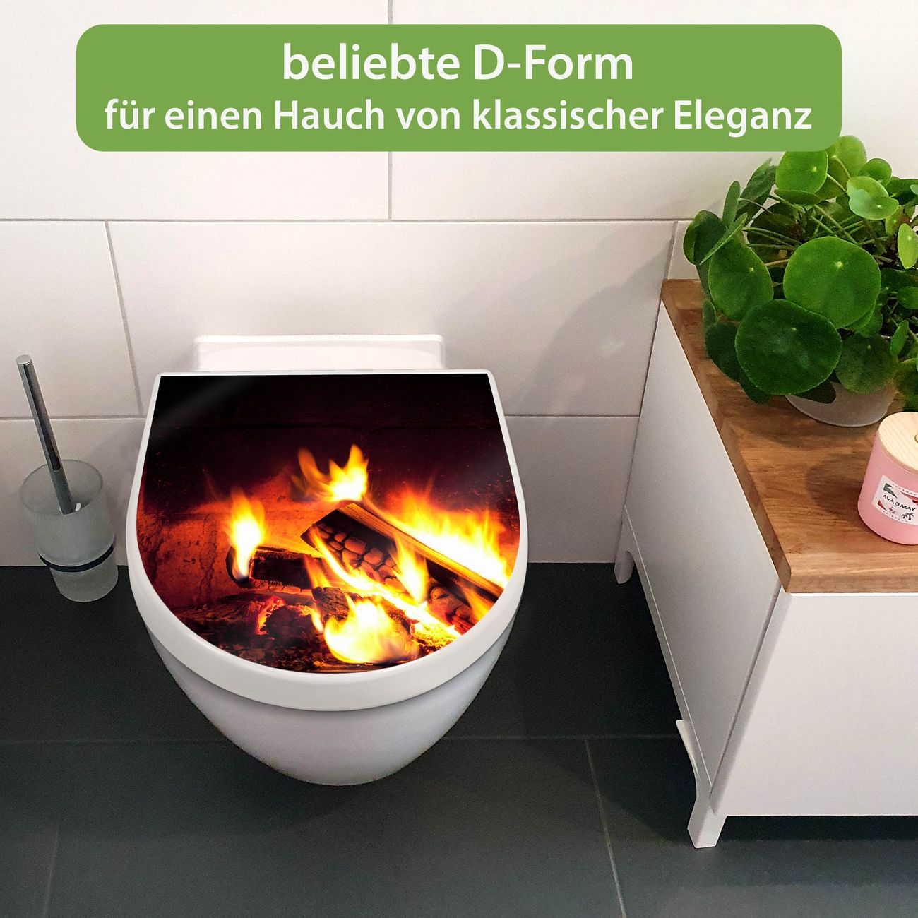 WC Sitz mit Absenkautomatik D Form Motiv Kaminfeuer