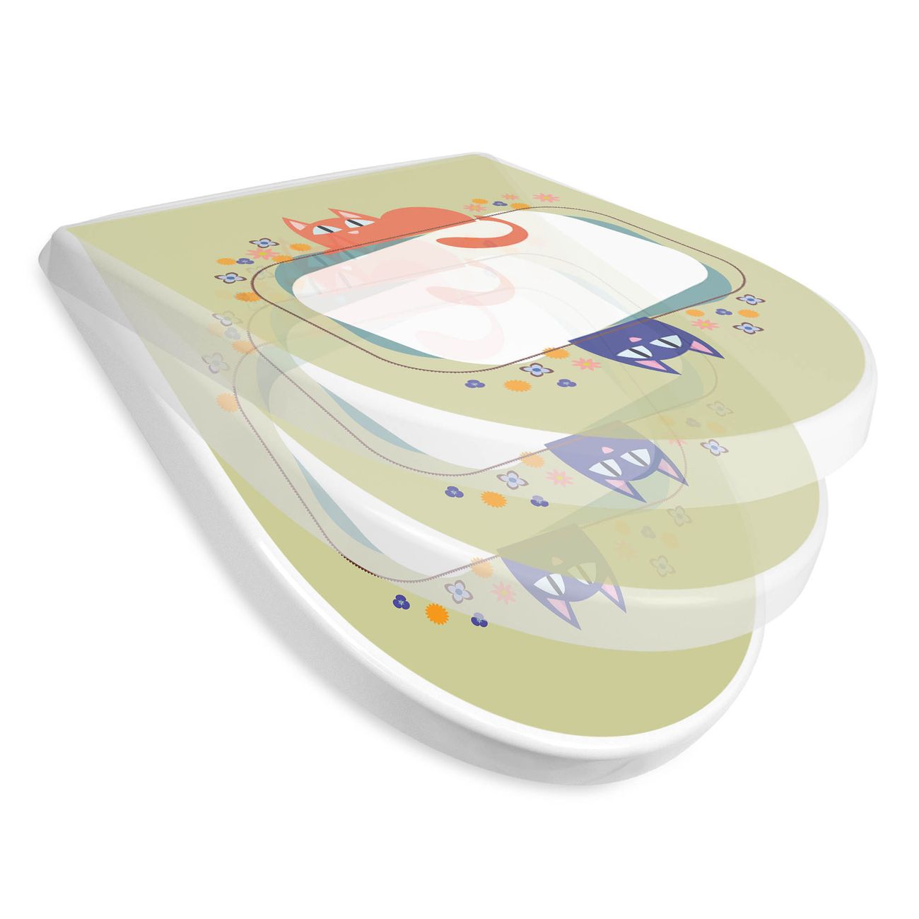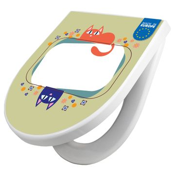 WC Sitz mit Absenkautomatik D Form Motiv Karikatur Katzen
