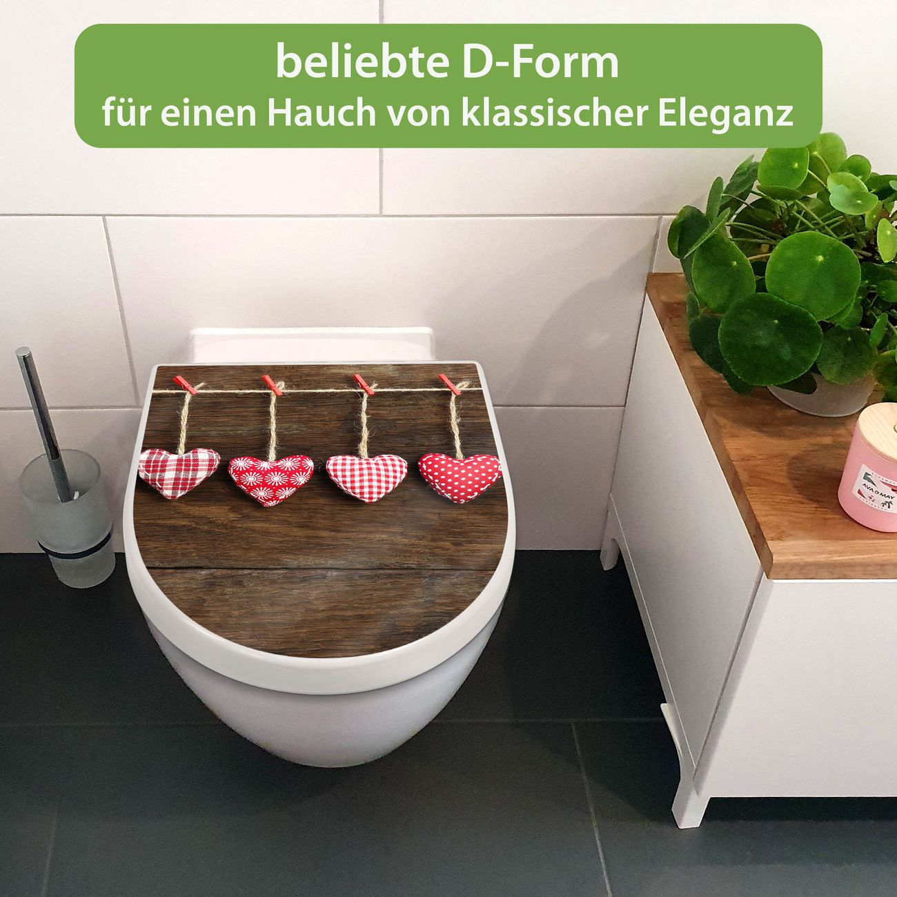 WC Sitz mit Absenkautomatik D Form Motiv Kleine Herzen