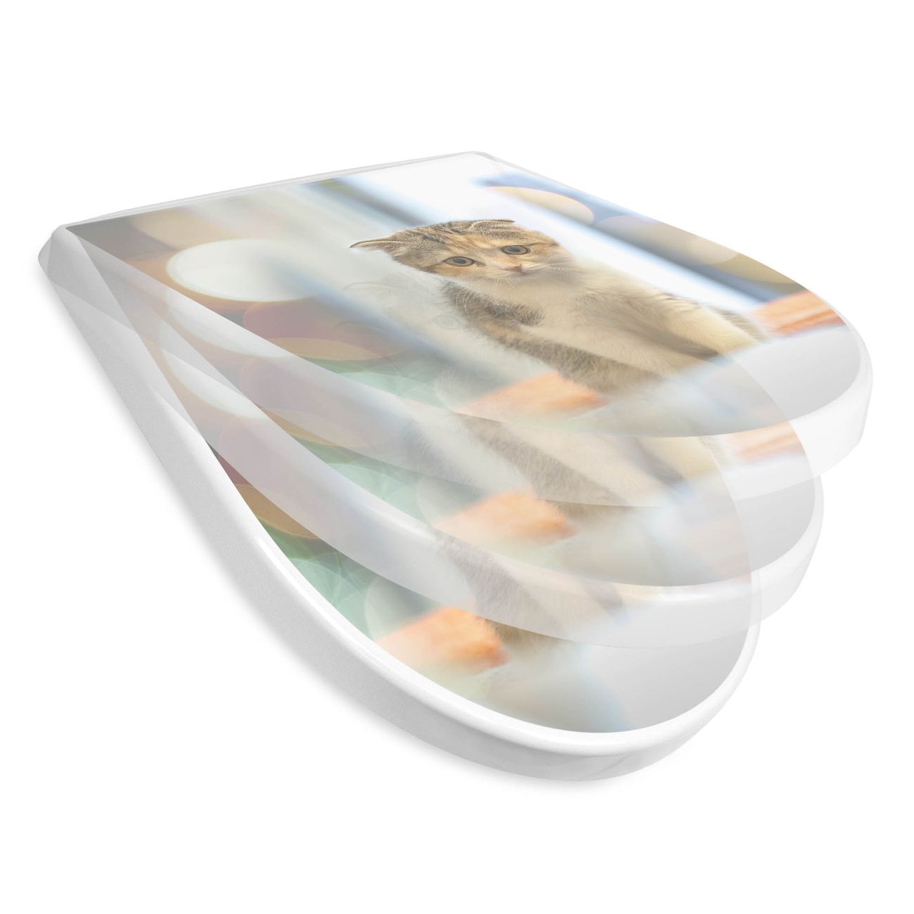 WC Sitz mit Absenkautomatik D Form Motiv Kleine Katze