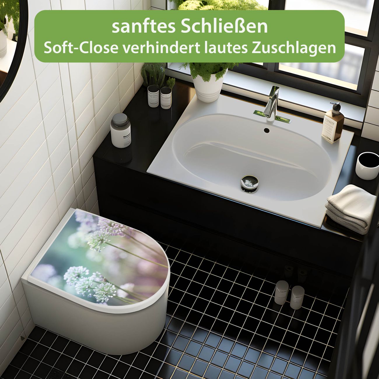WC Sitz mit Absenkautomatik D Form Motiv Lauchblüte