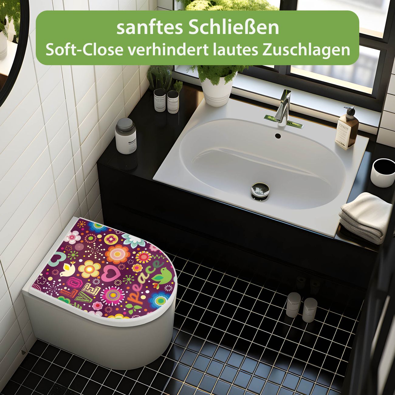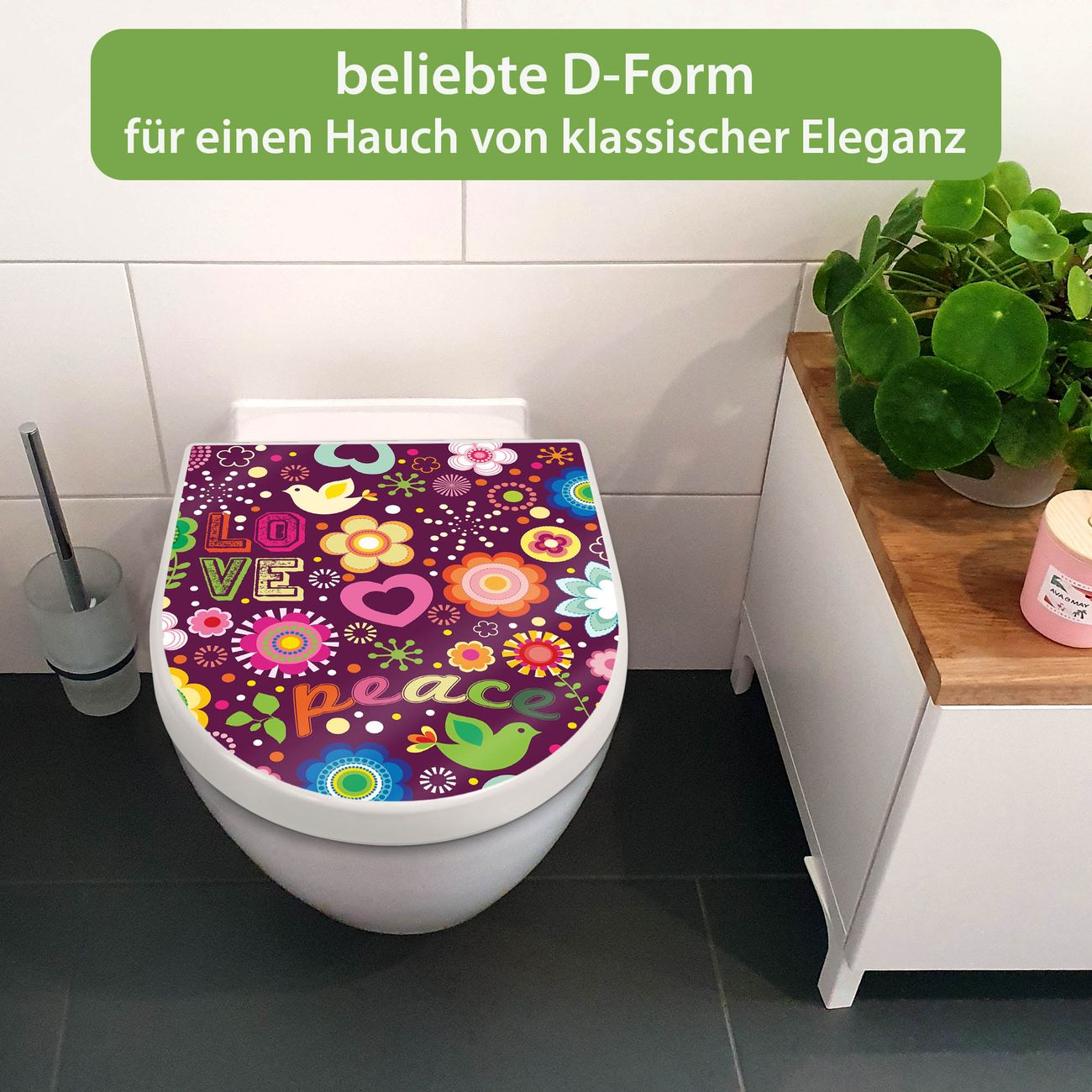WC Sitz mit Absenkautomatik D Form Motiv Love and Peace