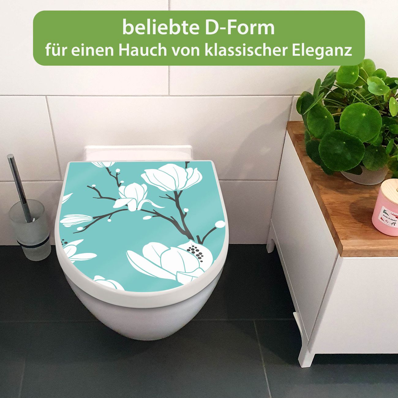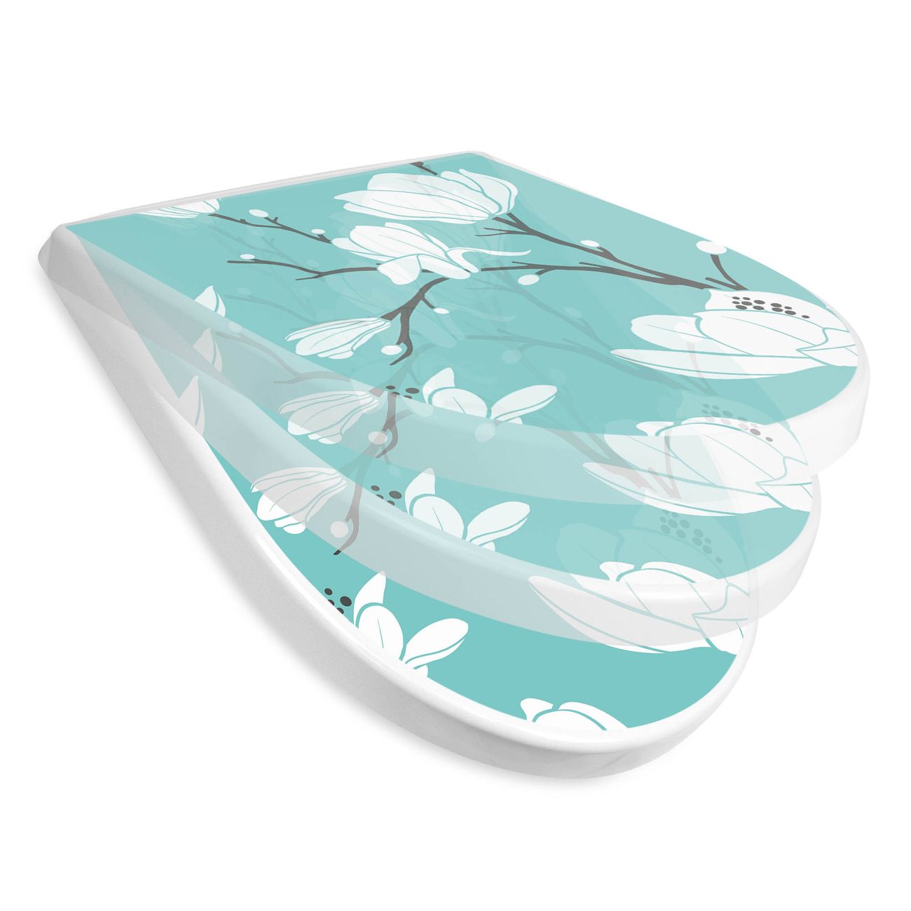 WC Sitz mit Absenkautomatik D Form Motiv Magnolien