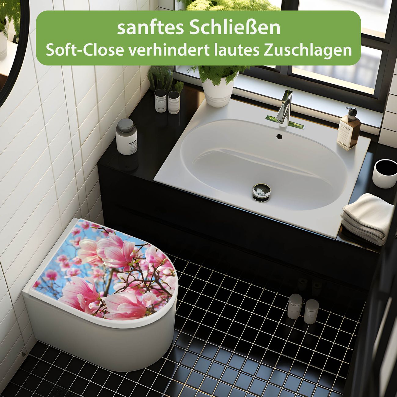 WC Sitz mit Absenkautomatik D Form Motiv Magnolienbaum
