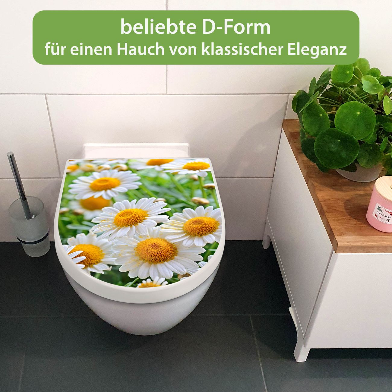 WC Sitz mit Absenkautomatik D Form Motiv Margeriten Illustration