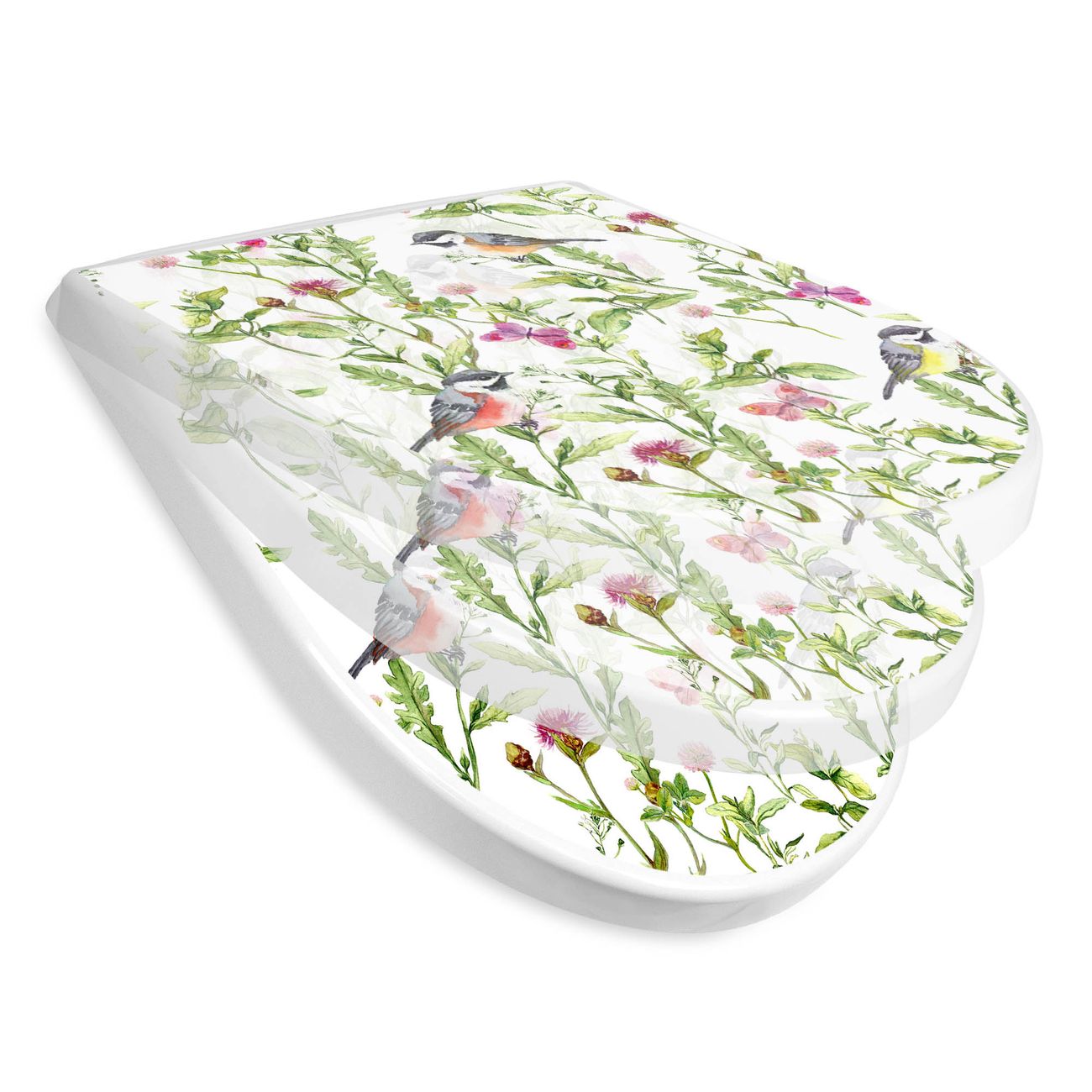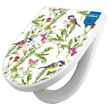 WC Sitz mit Absenkautomatik D Form Motiv Meisen im Klee