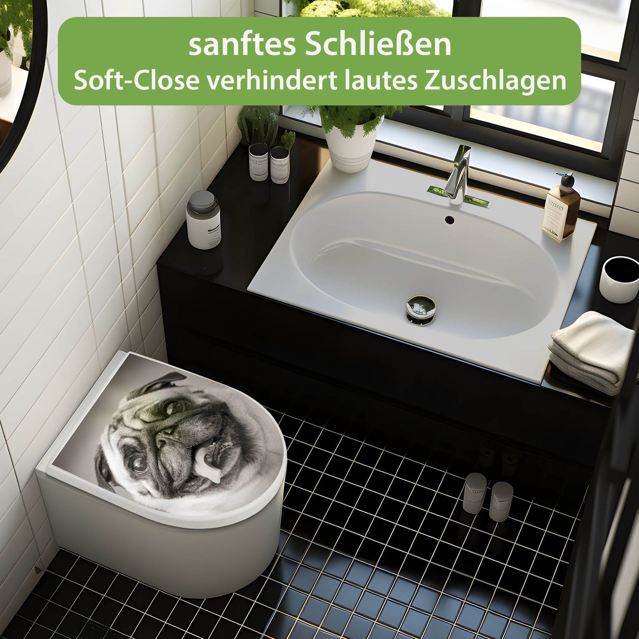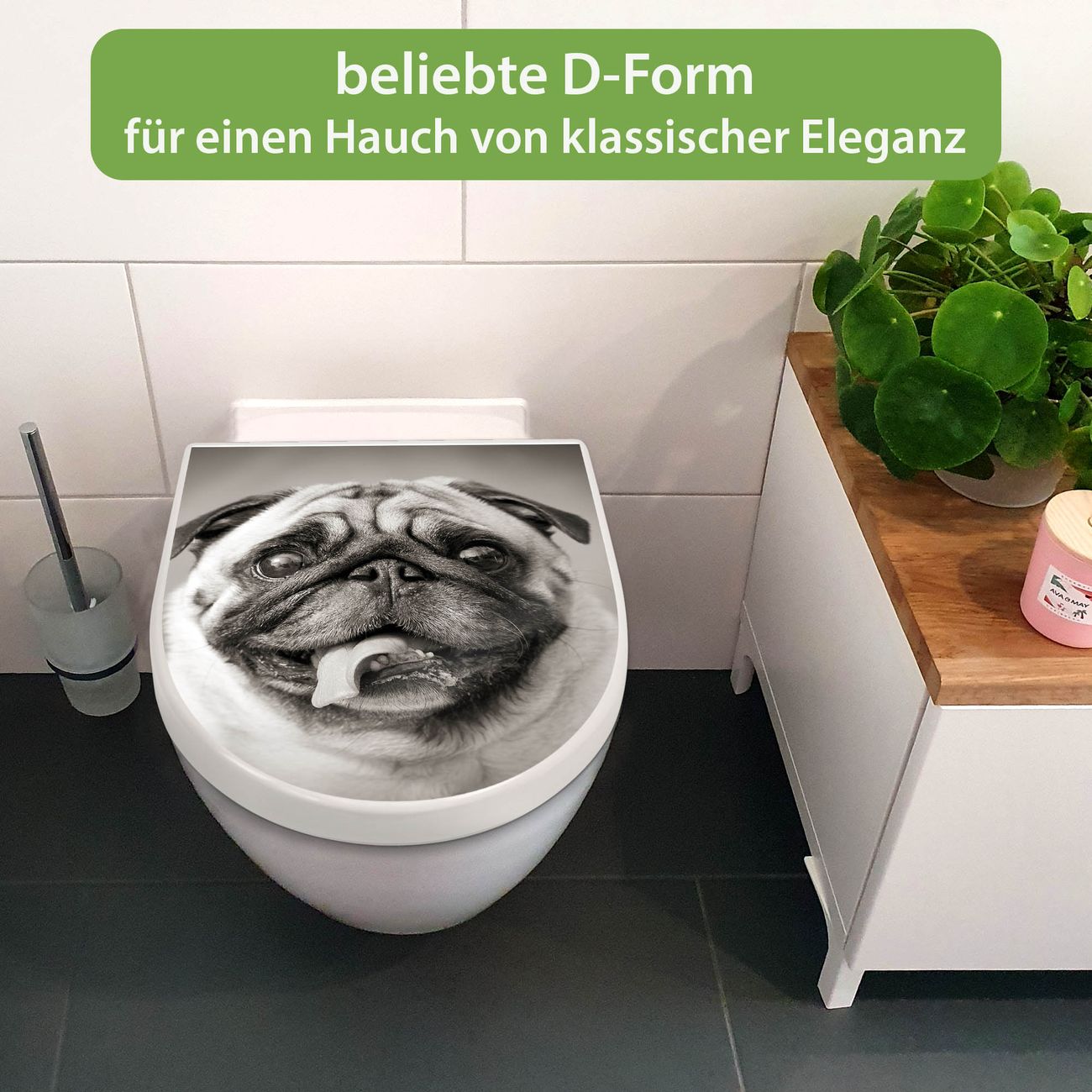 WC Sitz mit Absenkautomatik D Form Motiv Mops Porträt