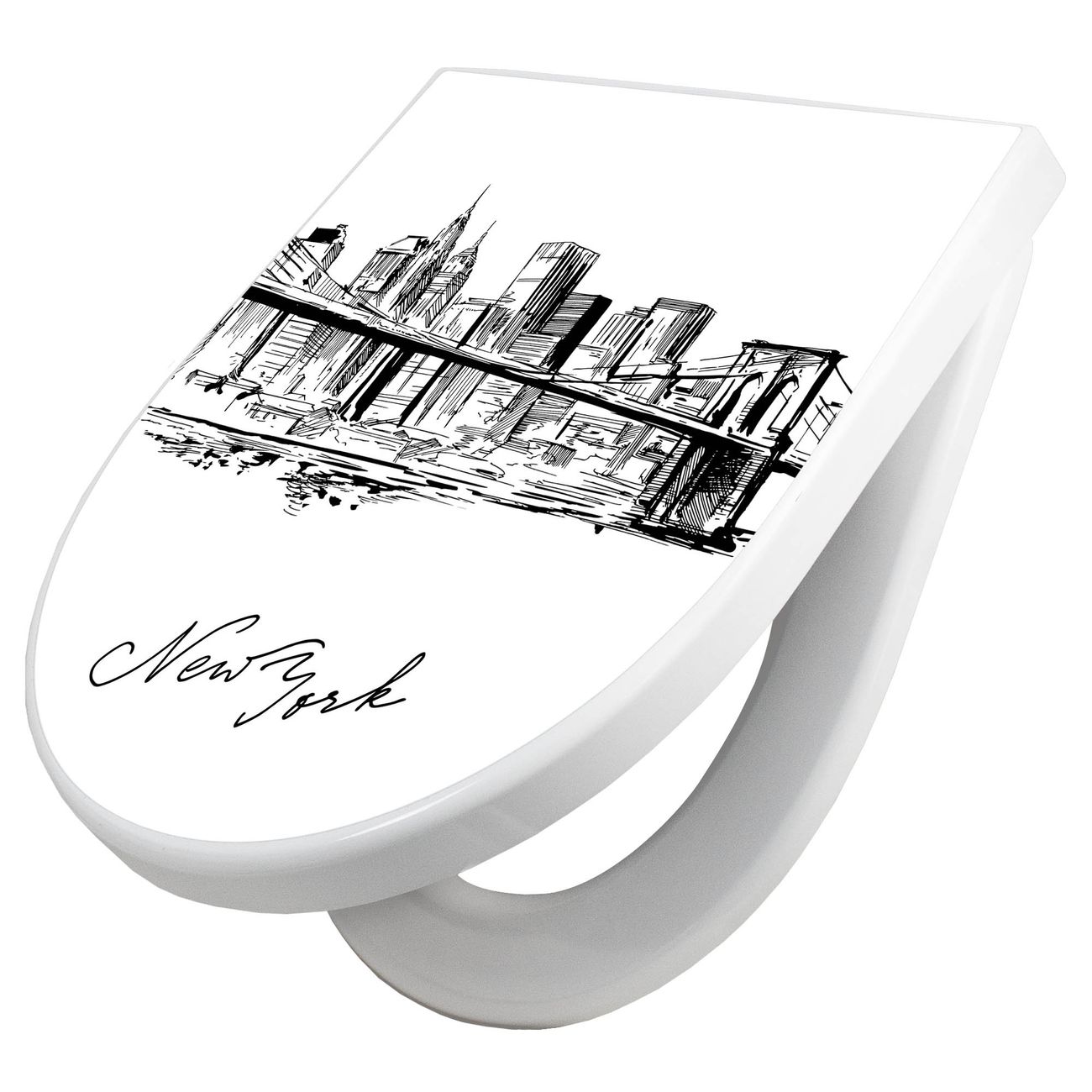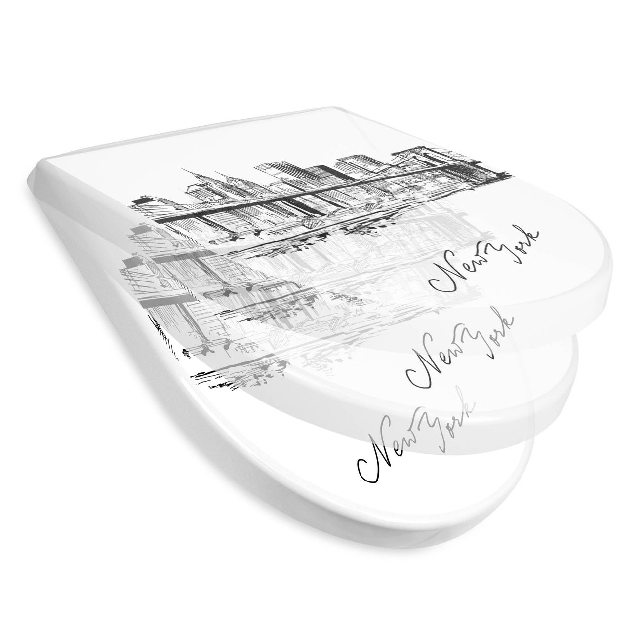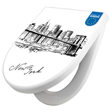WC Sitz mit Absenkautomatik D Form Motiv New York Skizze