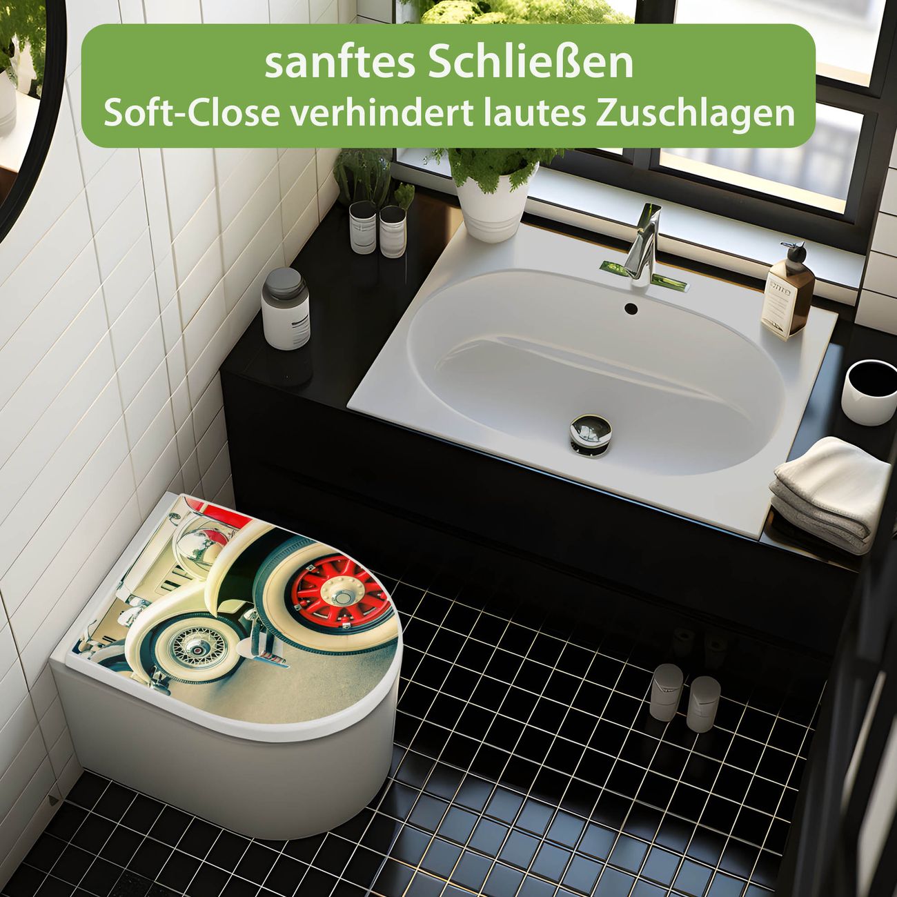 WC Sitz mit Absenkautomatik D Form Motiv Oldtimer Räder