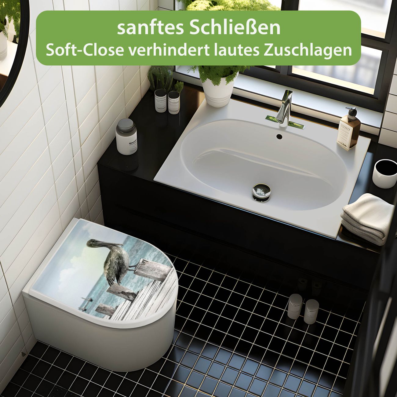 WC Sitz mit Absenkautomatik D Form Motiv Pelikane