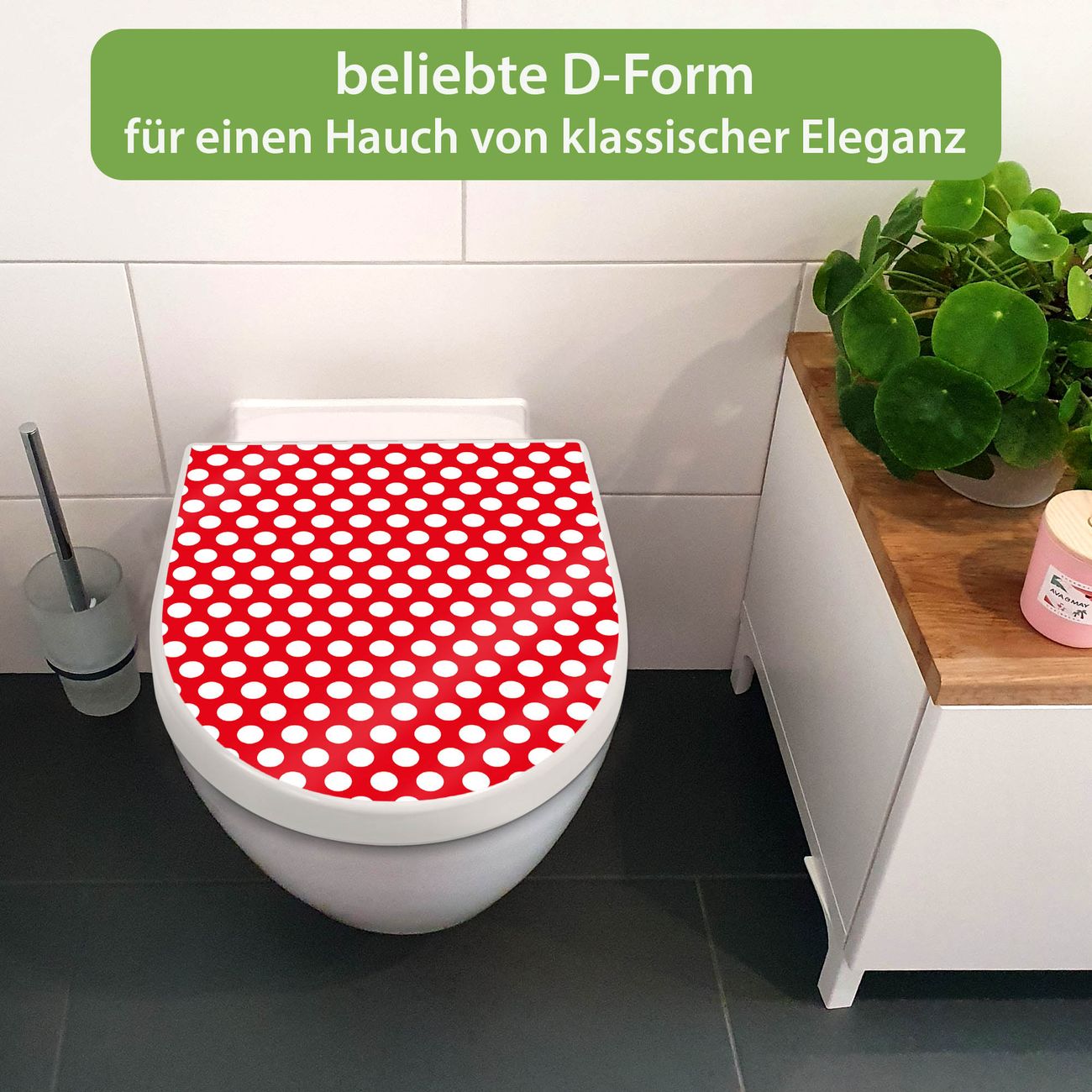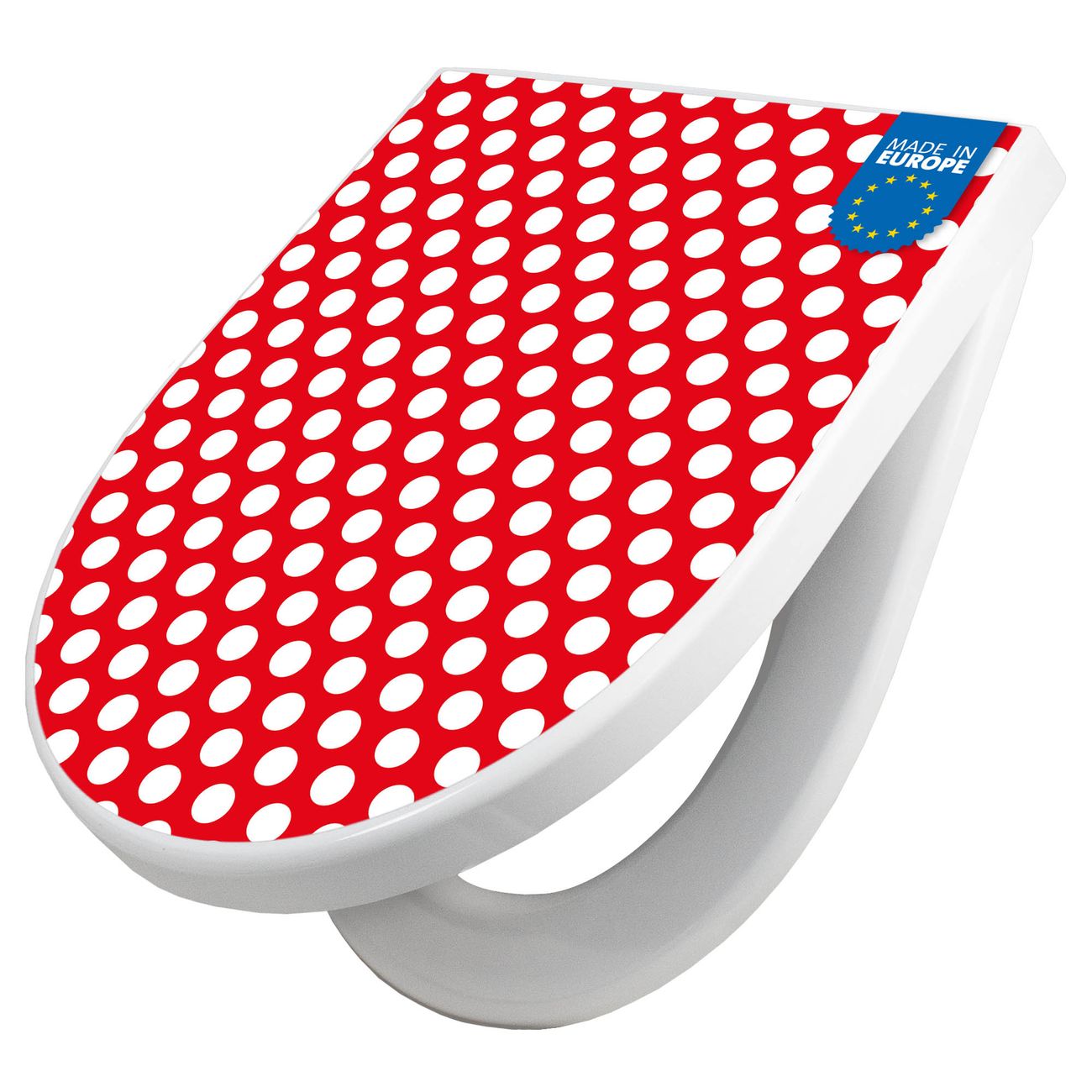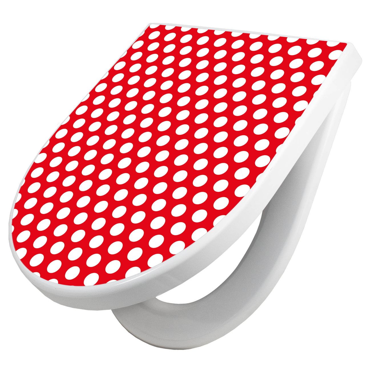 WC Sitz mit Absenkautomatik D Form Motiv Punkte Rot
