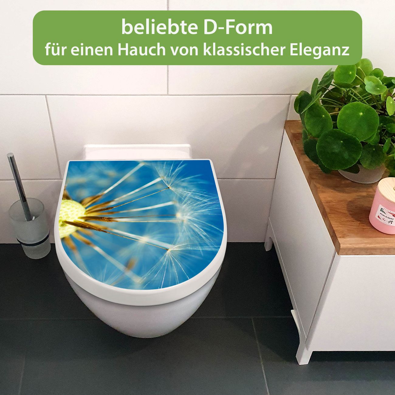 WC Sitz mit Absenkautomatik D Form Motiv Pusteblume Detail