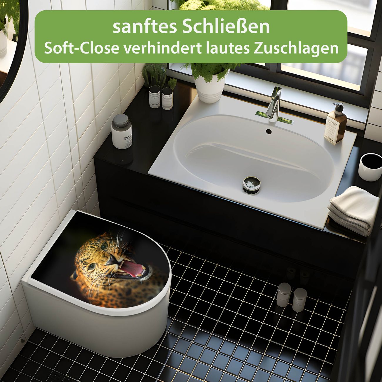 WC Sitz mit Absenkautomatik D Form Motiv Raubkatze