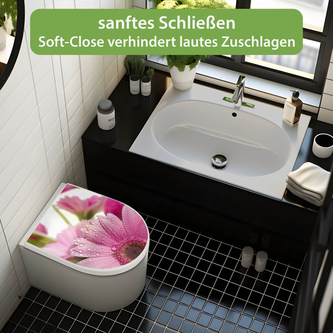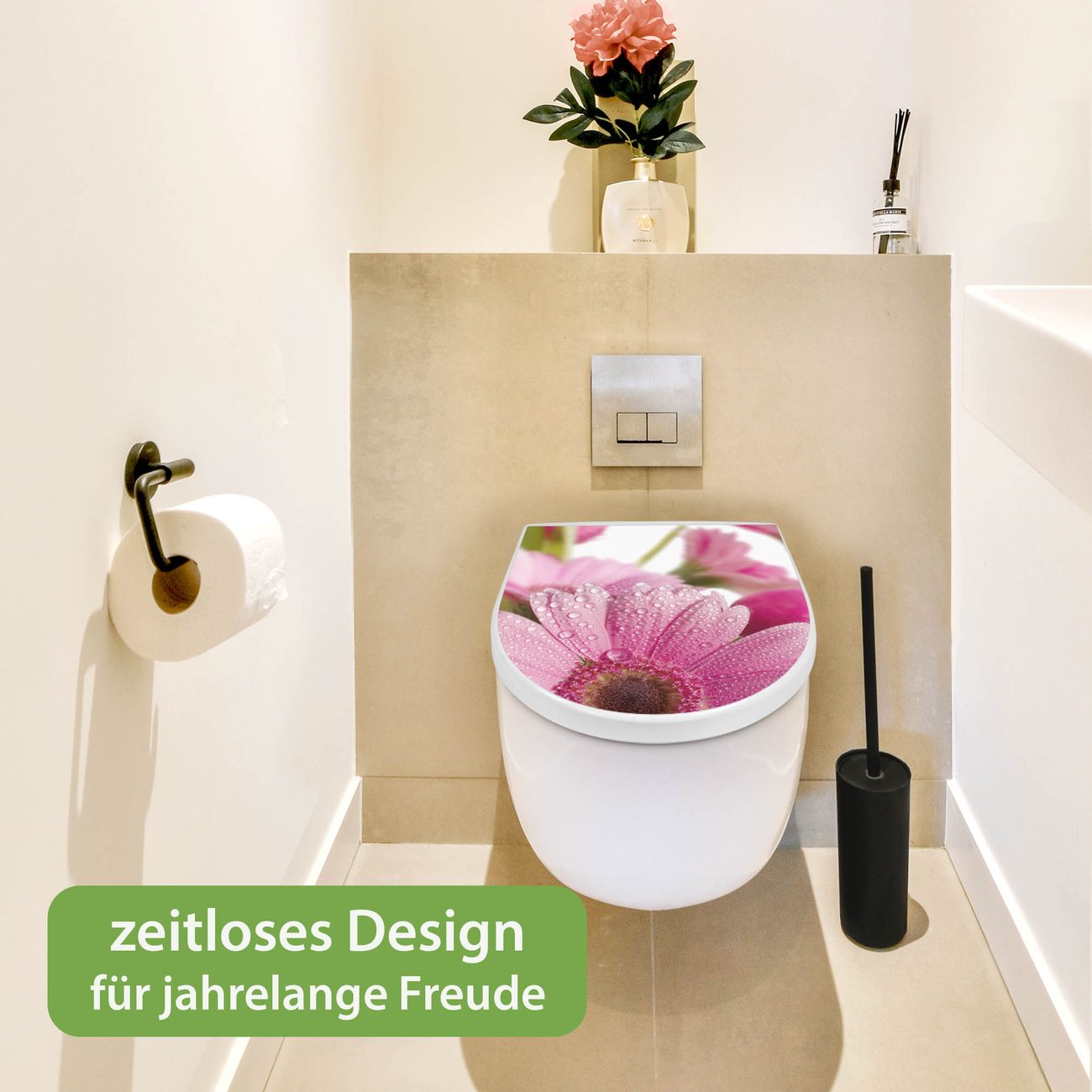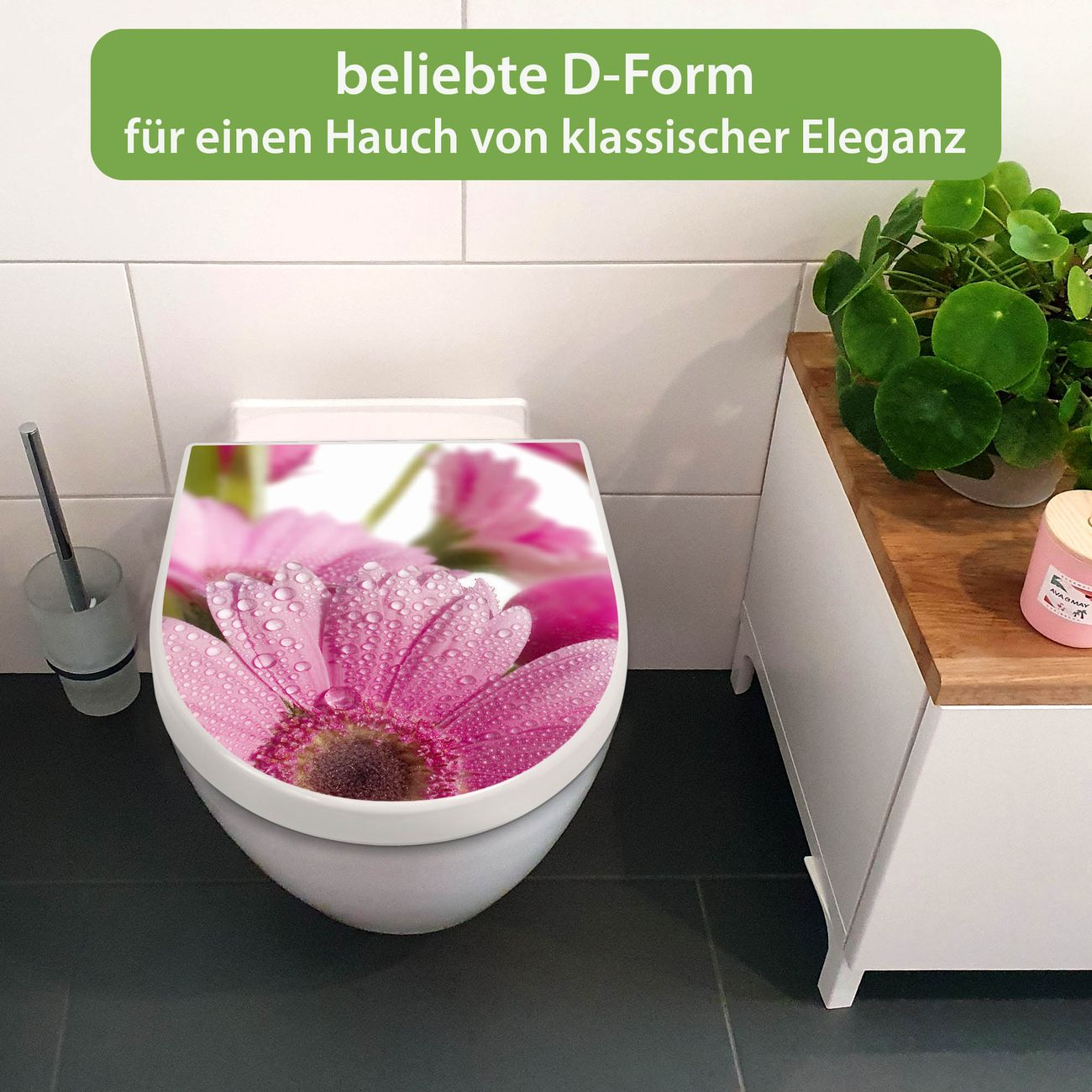 WC Sitz mit Absenkautomatik D Form Motiv Rosa Gerbera